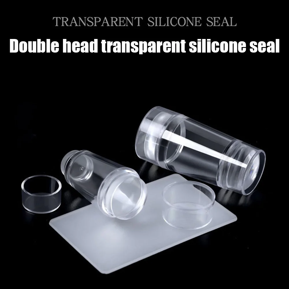 Переводной штамп для ногтей, силиконовый, с двойной головкой, для легкой быстрой печати французского ногтя, с пластиковым скребком, прозрачный Маникюр сделай сам