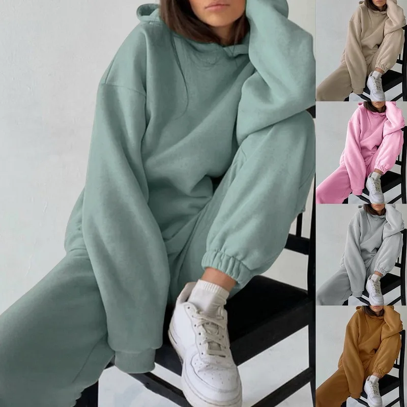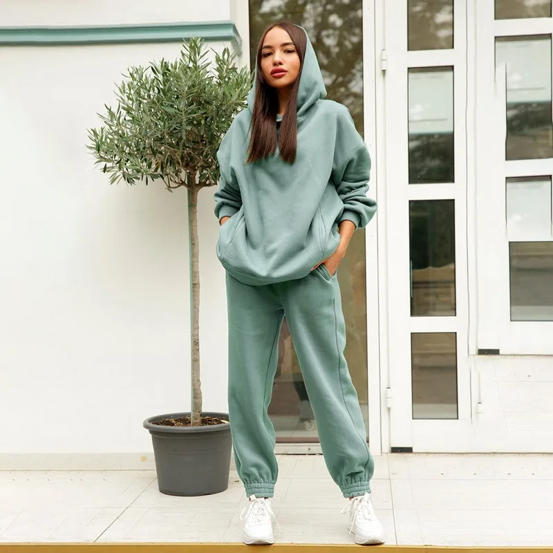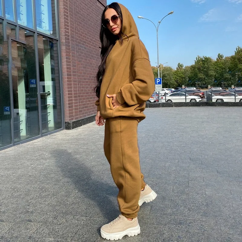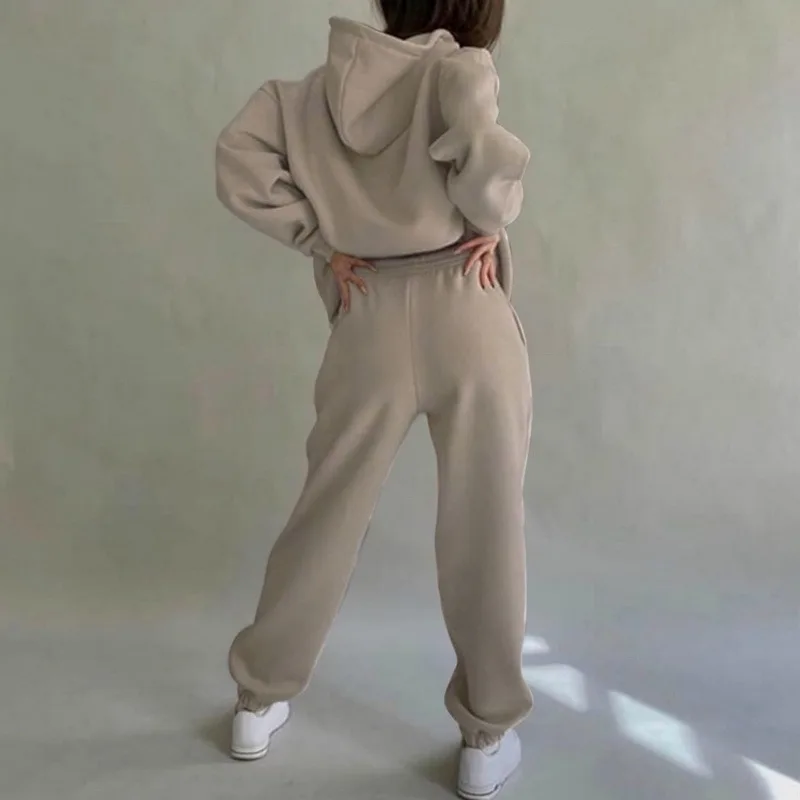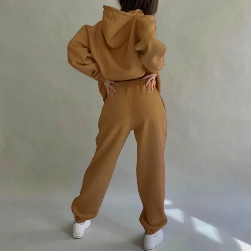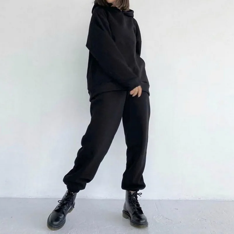 Женский спортивный костюм из двух предметов, однотонная хлопковая толстовка с капюшоном и штаны для бега
