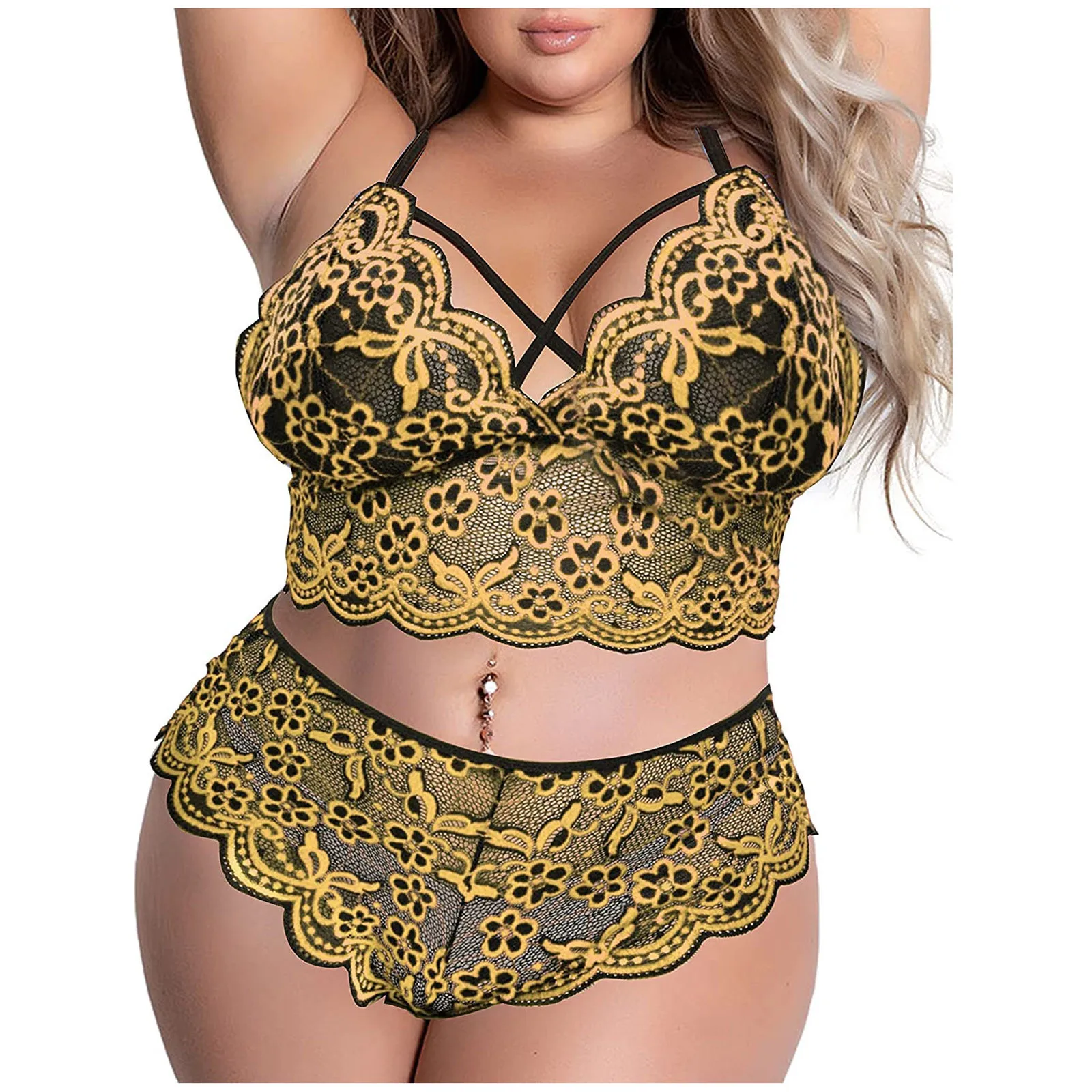 Комплект эротического кружевного нижнего белья, бюстгальтер без косточек, трусики, ночная рубашка, пижама, интимный костюм размера плюс 4xl