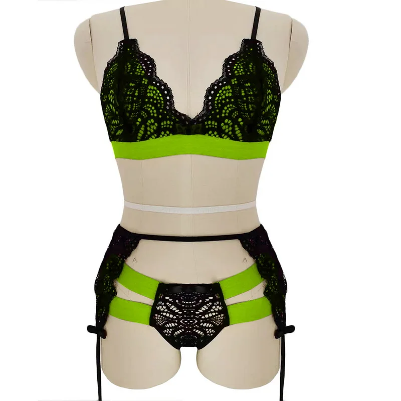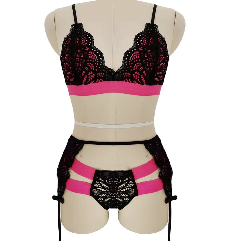 Комплект женского кружевного нижнего белья, с подвязками, 3 шт.