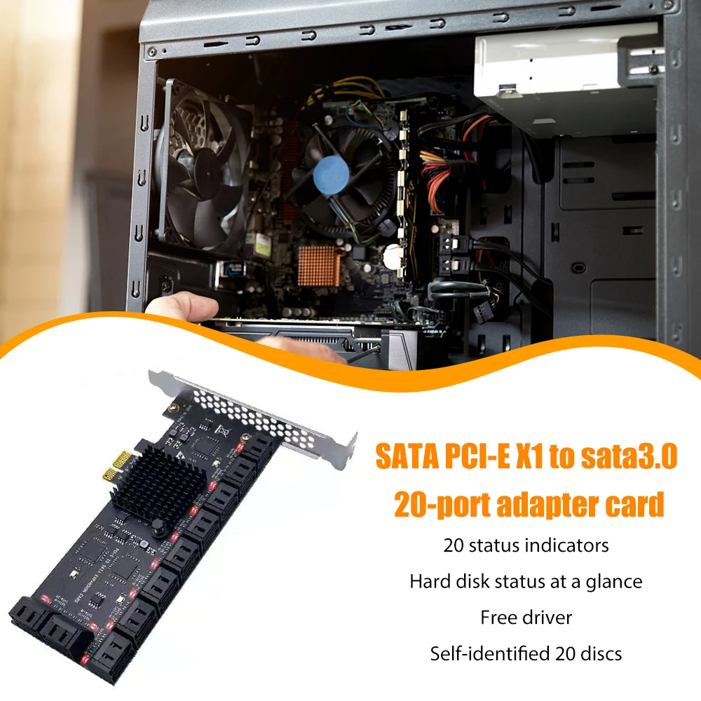 Плата расширения контроллера SATA PCI-E X1-SATA 3,0, 20 портов