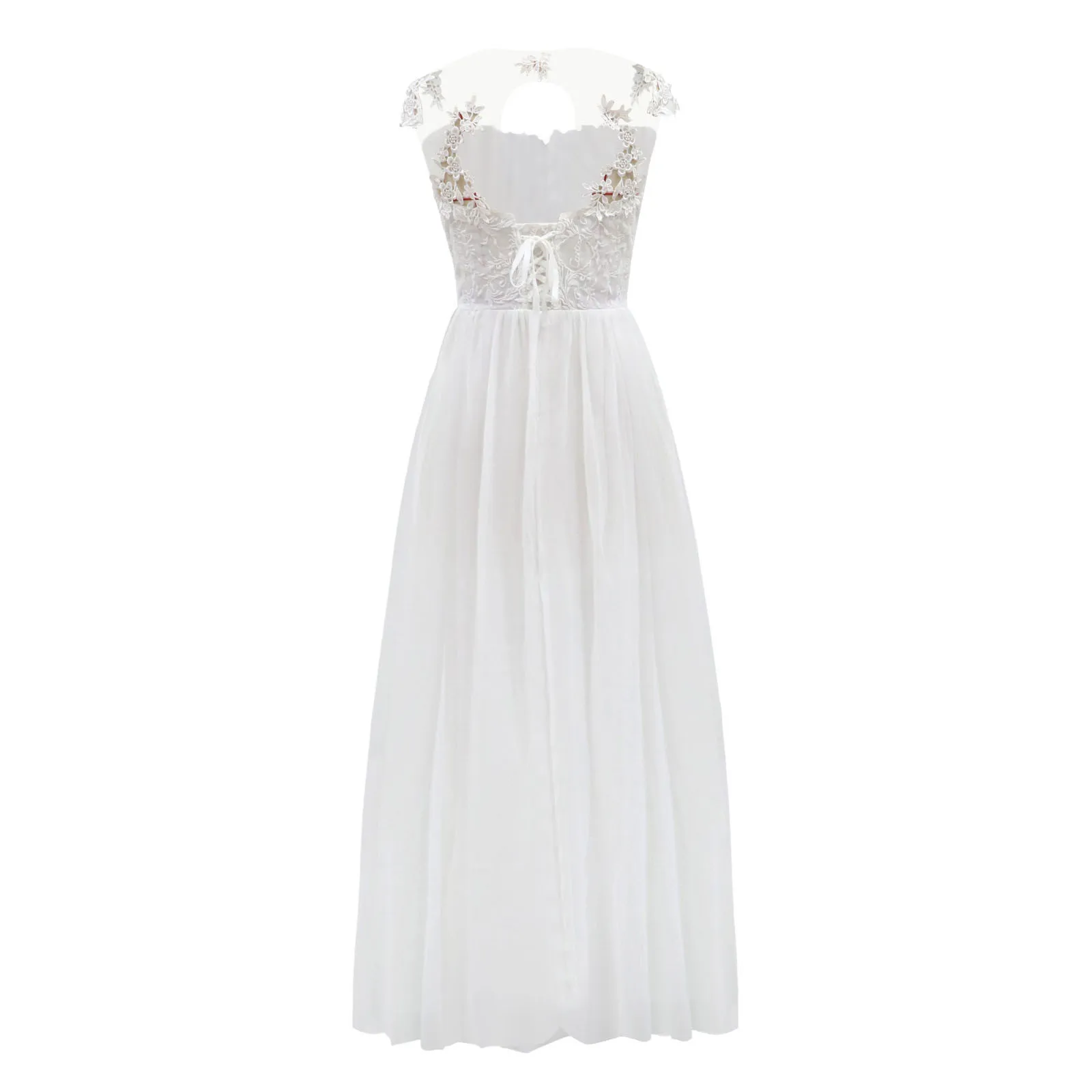 Женское кружевное свадебное платье без рукавов, элегантное белое платье в стиле бохо с цветочным принтом и высокой талией, длинное платье для вечерние ринки