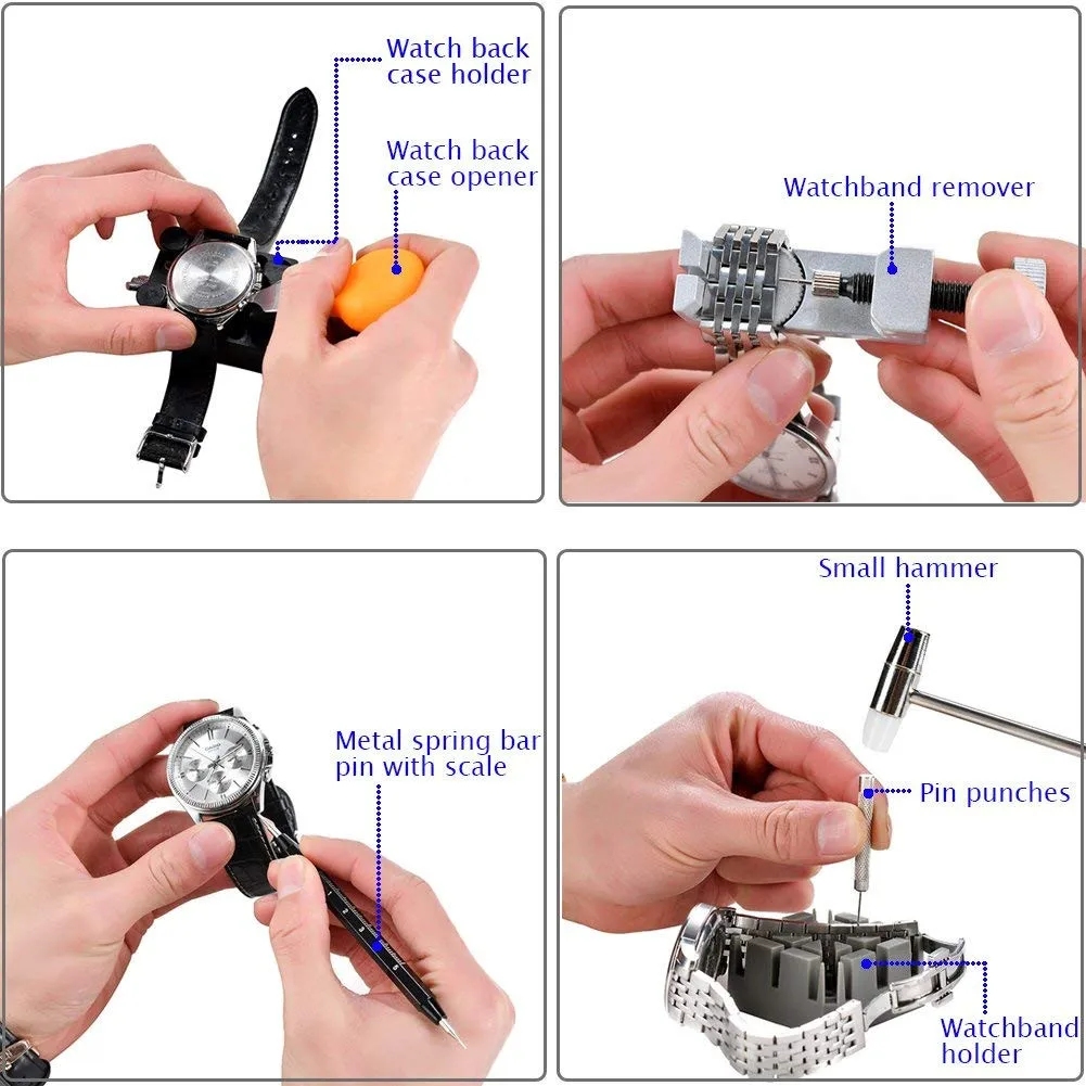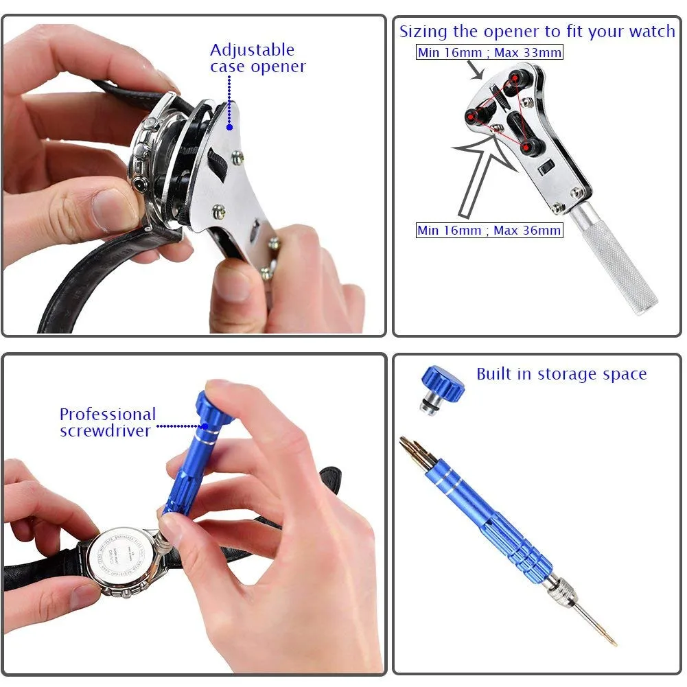 Профессиональный и Точный инструмент для ремонта часов, идеально подходит для общих проблем с часами, как открытие Ремешок для часов, Регулировка часов, меняющиеся часы, аккумуляторы, прокладки,