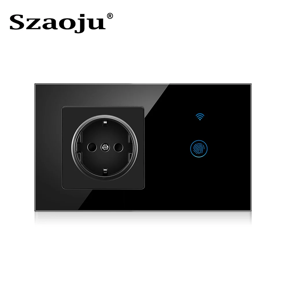 Умный сенсорный выключатель Szaoju TUYA, настенная розетка 146*86 мм, немецкая панель из хрустального закаленного стекла с Wi-Fi-переключателем