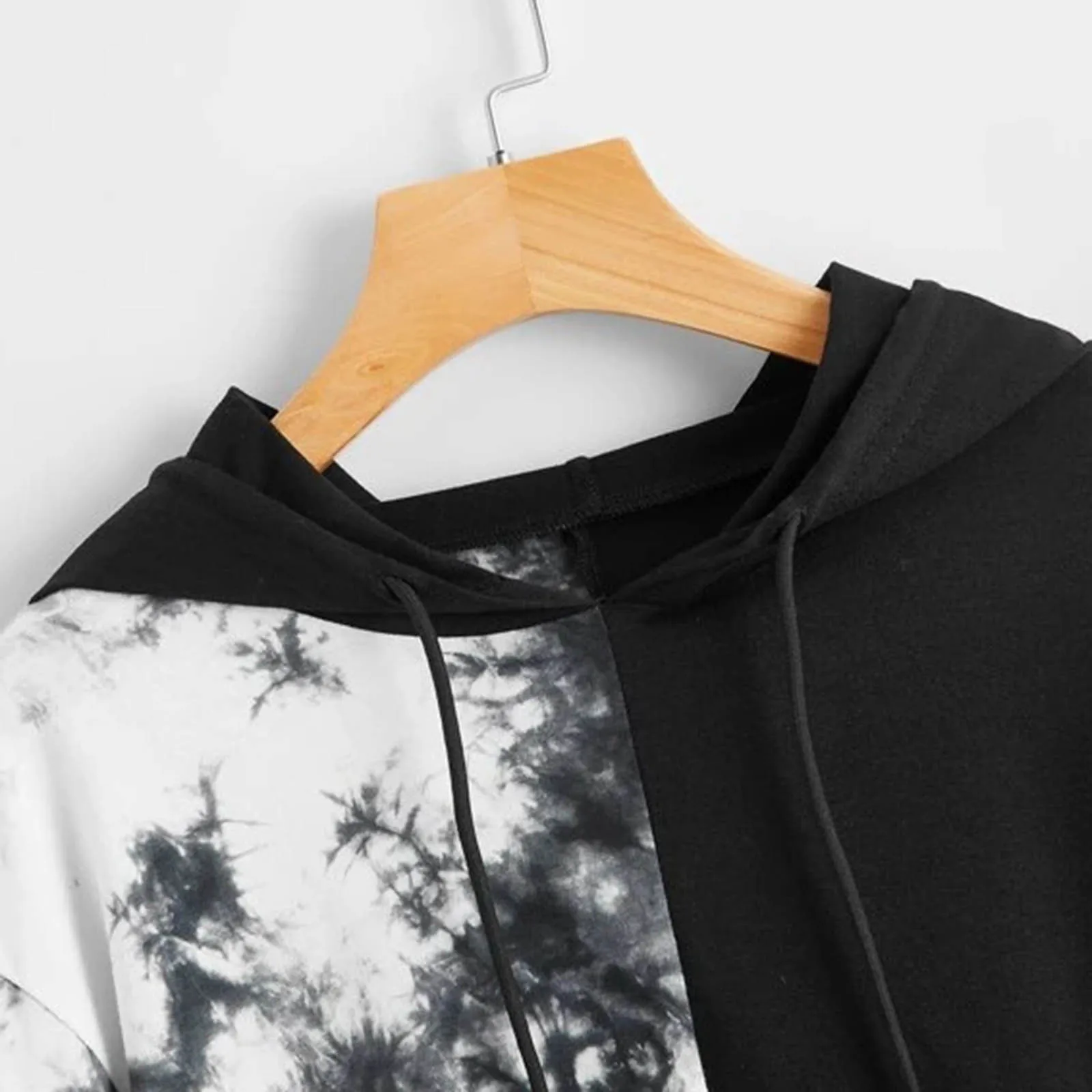 Женские короткие толстовки с длинным рукавом, модные толстовки с капюшоном и принтом Tie-Dye, повседневные толстовки в стиле хип-хоп, Короткие пуловеры, одежда # W4, 2021