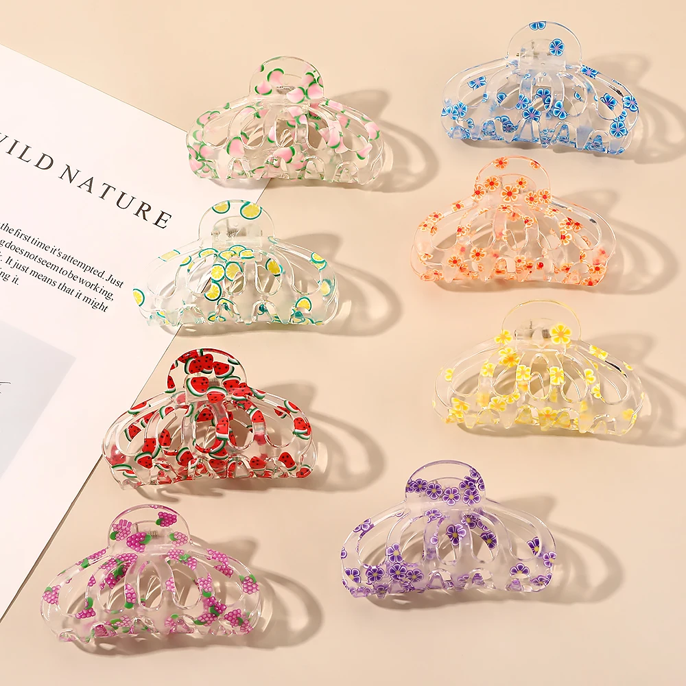 Модные милые заколки для волос с фруктовым узором, простые прозрачные заколки для волос, заколка для конского хвоста, зажим для волос для ванны, аксессуары для волос для женщин