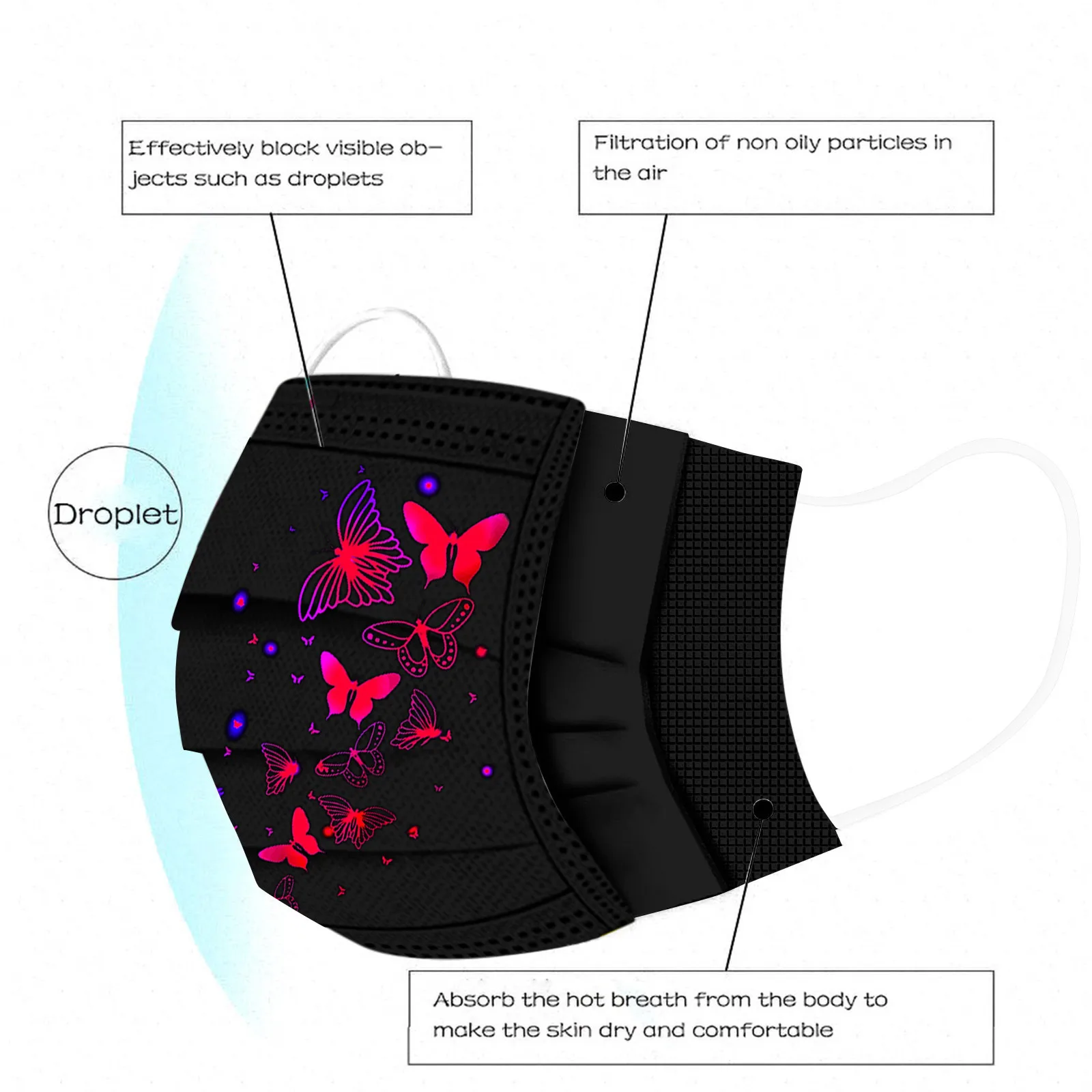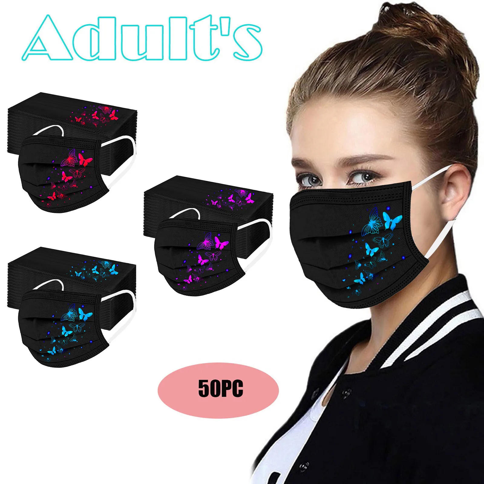 Маска Нетканая для взрослых с принтом бабочки, одноразовая Защитная...