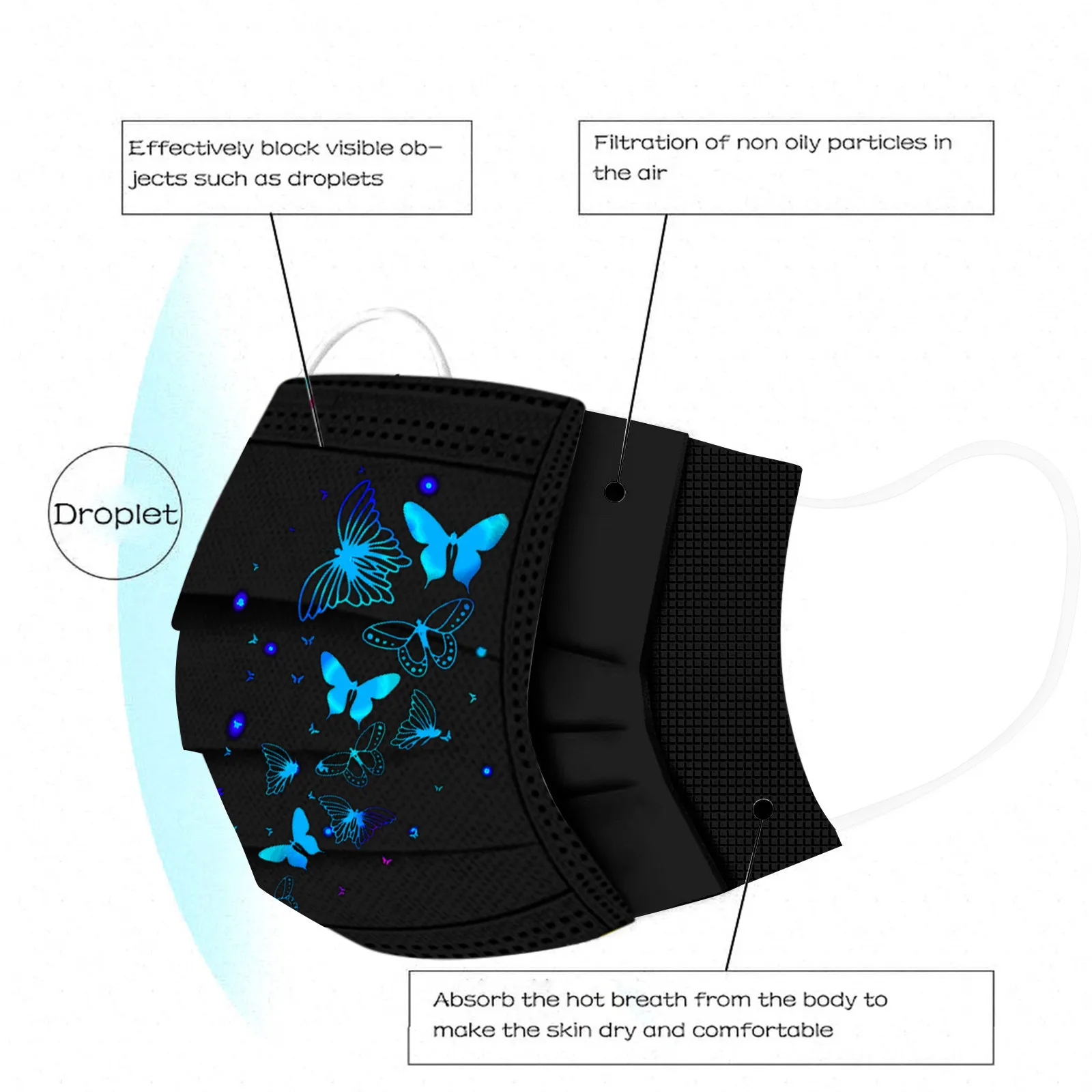 Маска одноразовая Нетканая с принтом бабочки для мужчин и женщин, з...
