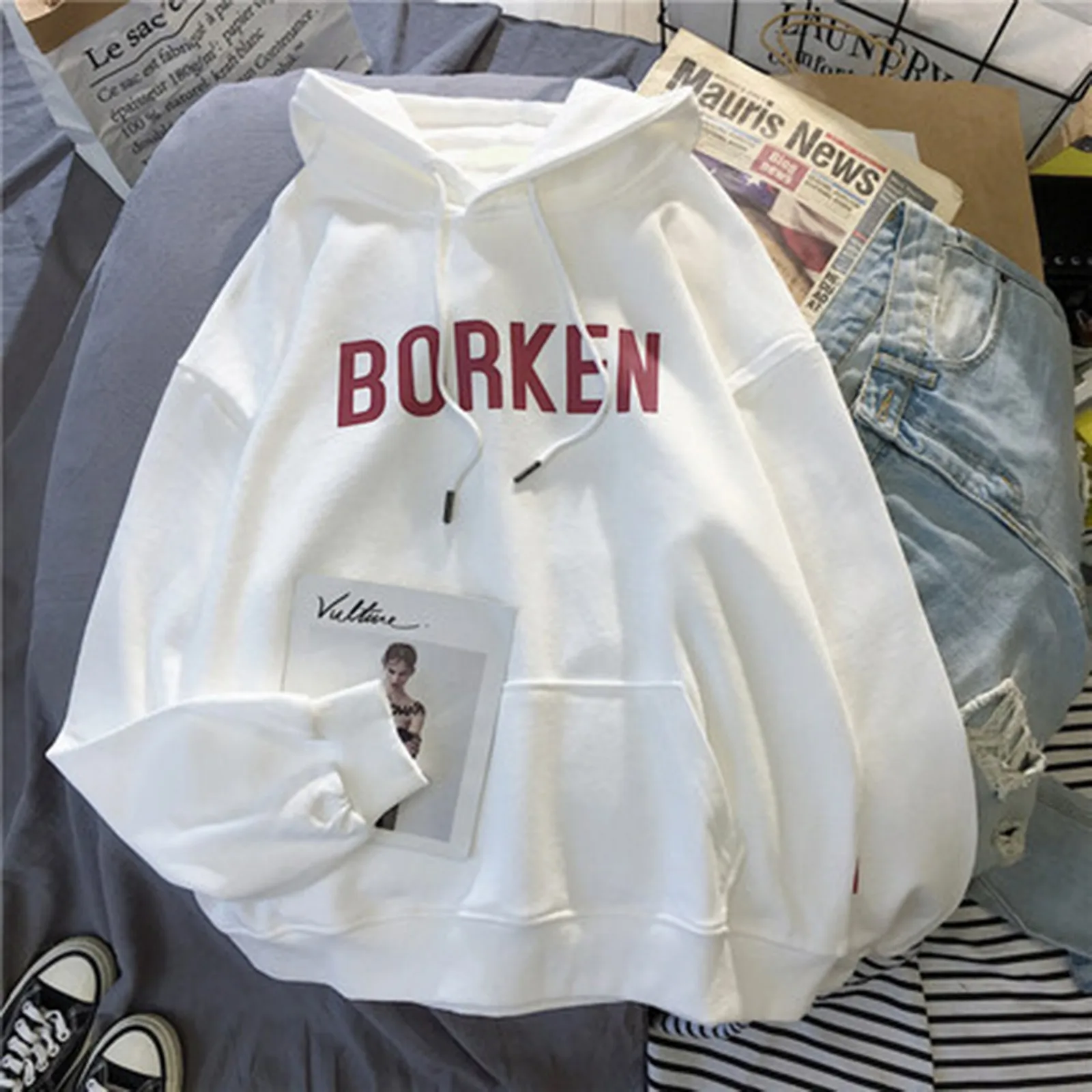 Толстовка Женская весенне-осенняя с капюшоном, с длинным рукавом и карманами, # W4