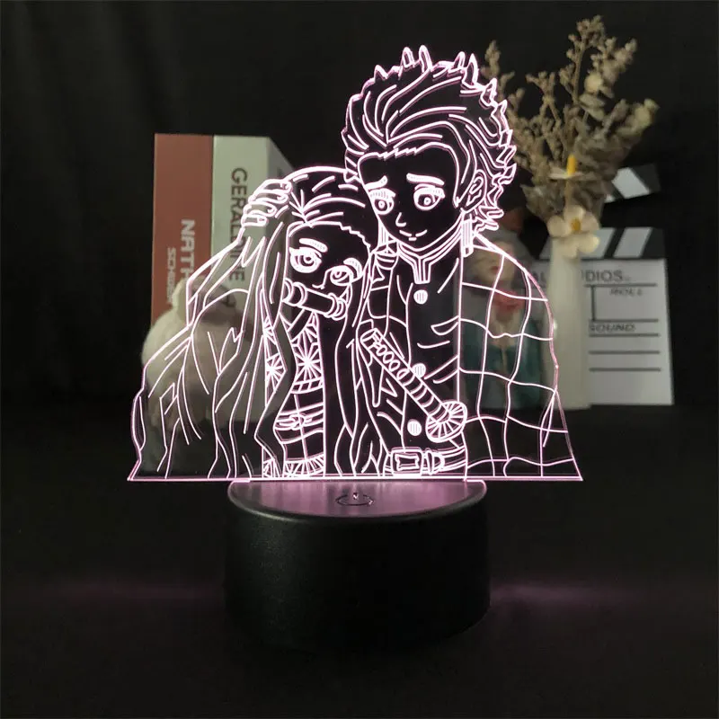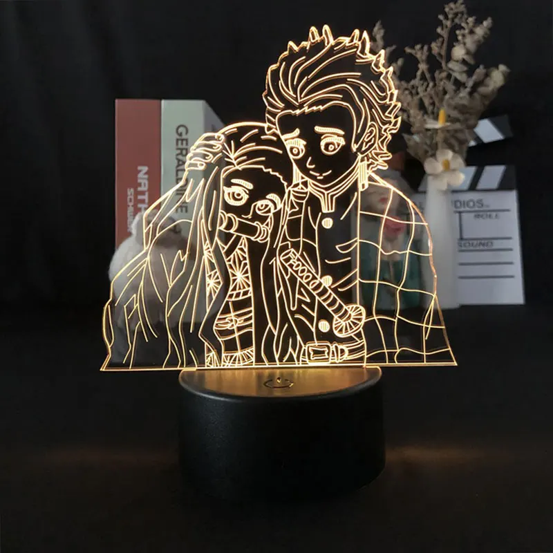 Аниме Светодиодная лампа Kimetsu No Yaiba Tanjiro X Nezuko для украшения спальни Ночной светильник в подарок манга 3d светильник демон убийца декор комнаты
