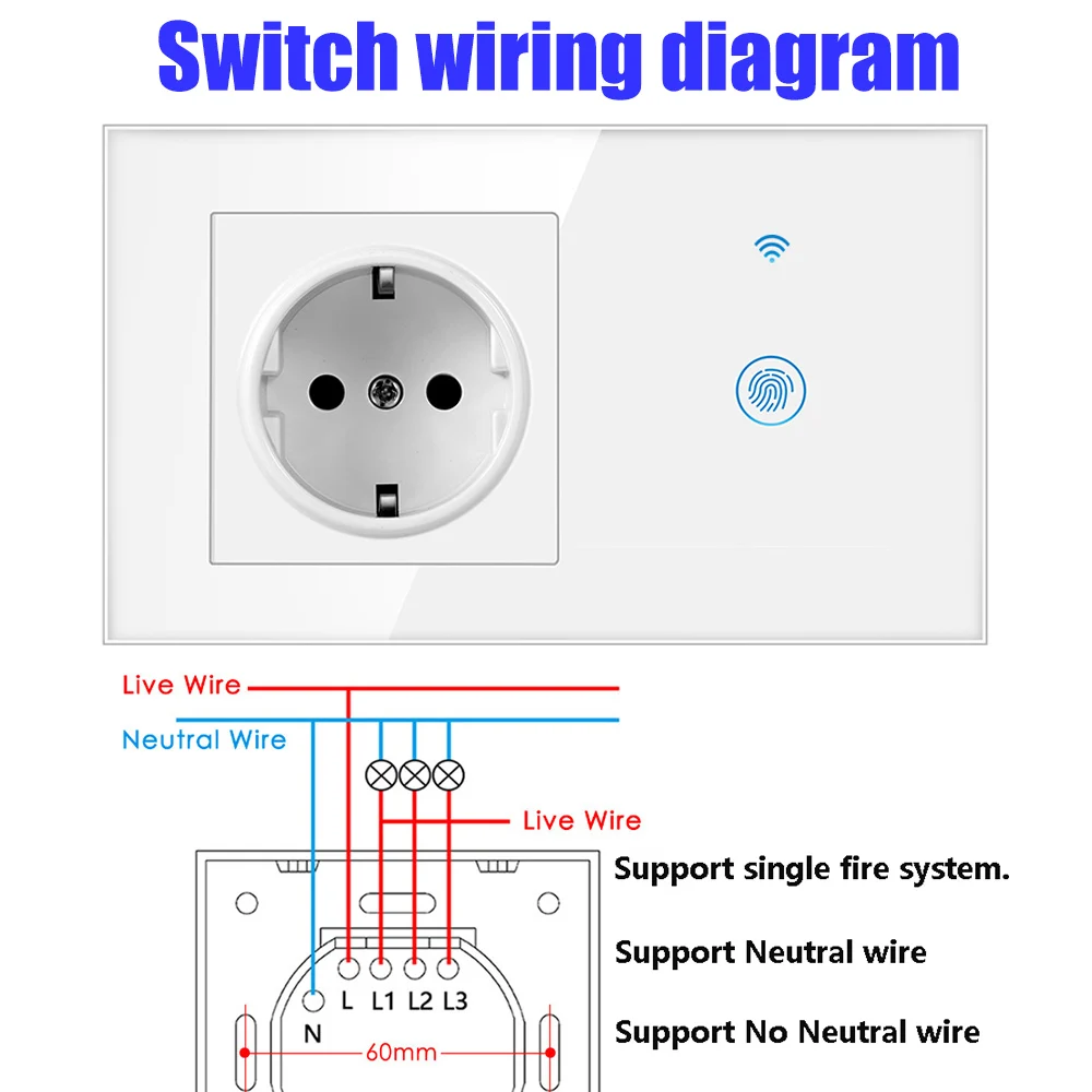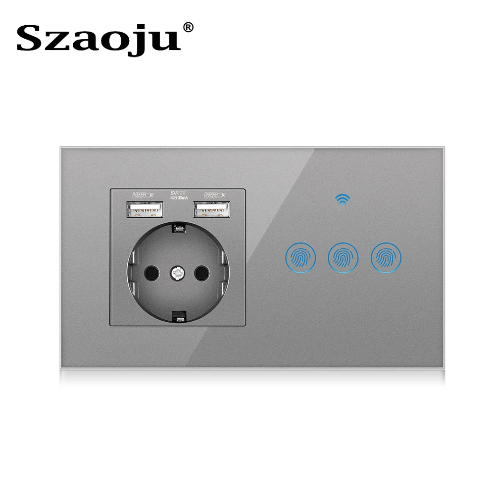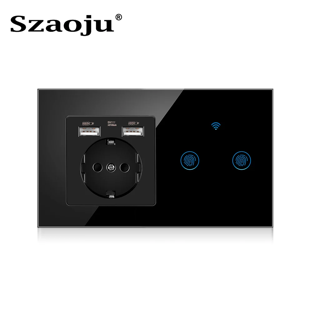 Умный сенсорный выключатель TUYA, 16 А, USB-разъем 146*86 мм