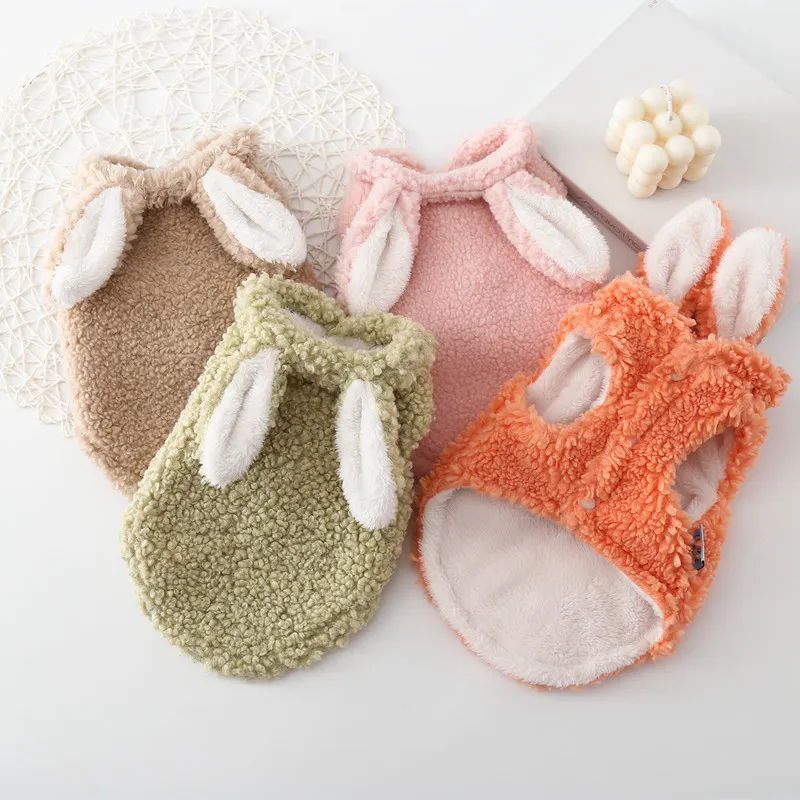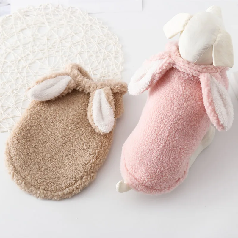 Зимняя теплая куртка с вельветовыми кроличьими ушками, жилетка для собаки, для собак и кошек, одежда для щенков, пальто для французского бульдога