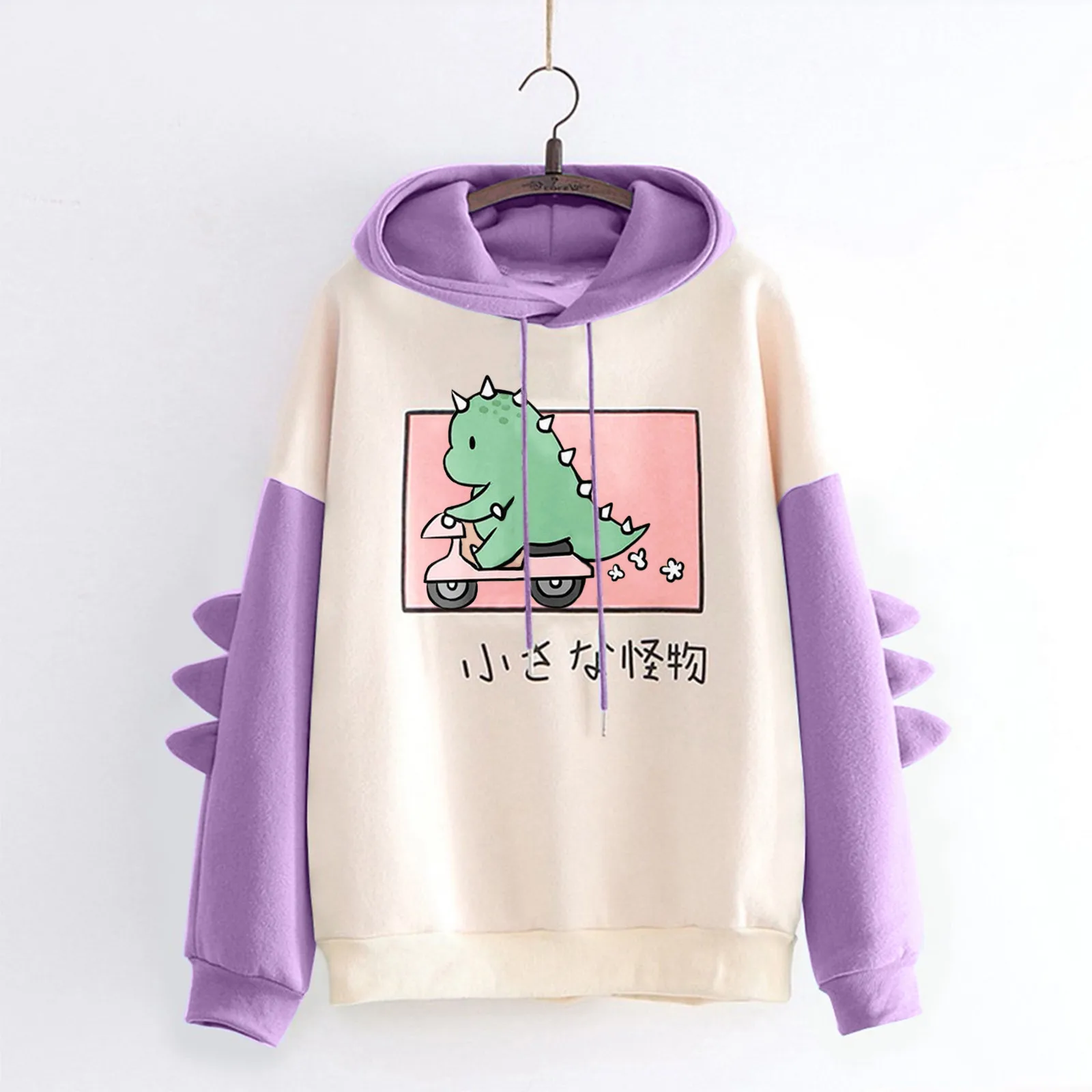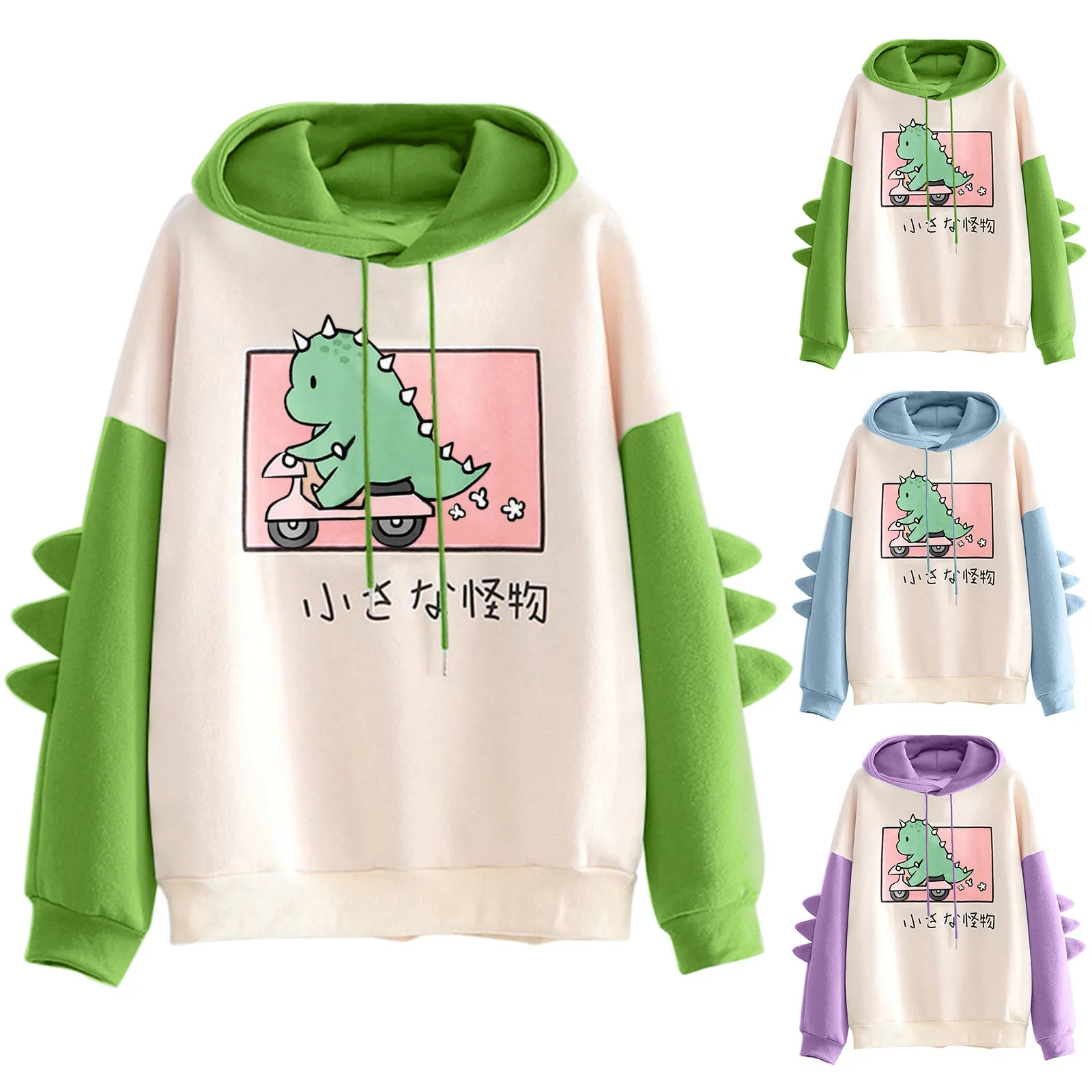 Худи с мультипликационным динозавром, Женские Модные Толстовки, Тол...