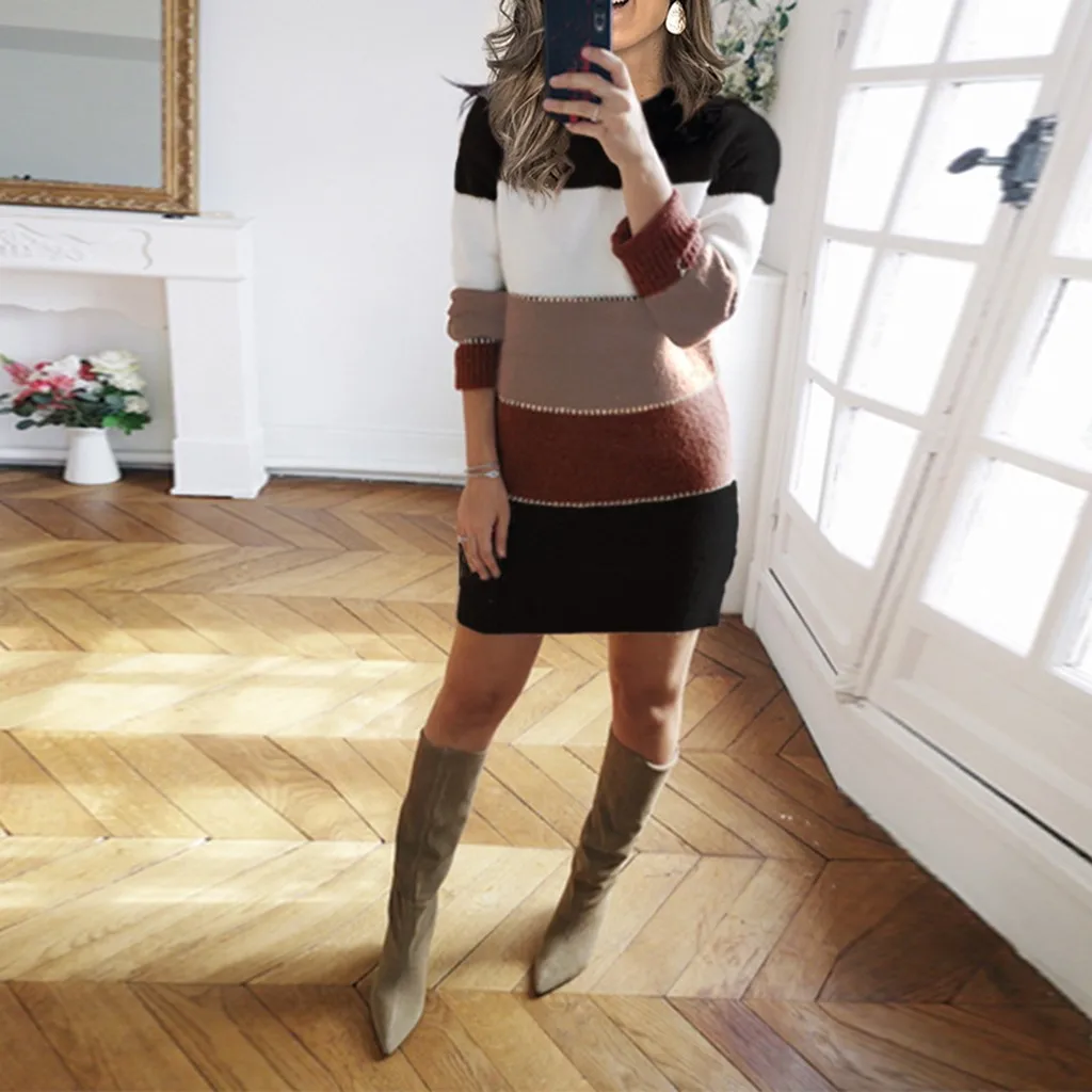 Женское трикотажное платье-свитер средней длины, с длинным рукавом