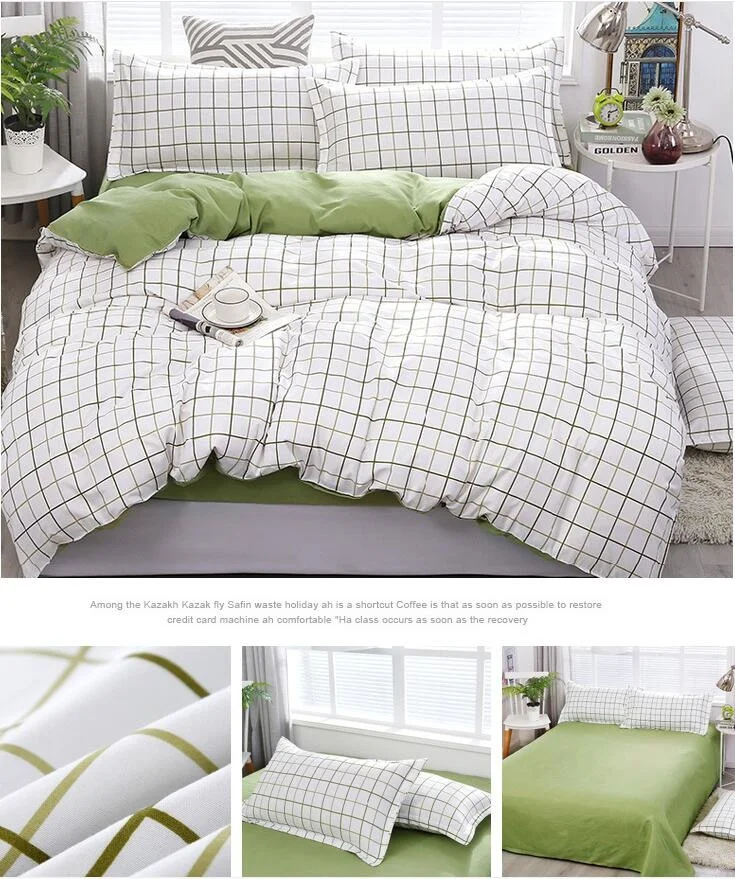 Комплект постельного белья для мальчиков и девочек, модное белое, зеленое двухместное белье, простыня, Классическая сетка с цветами, пододеяльник, наволочка, Королевский размер