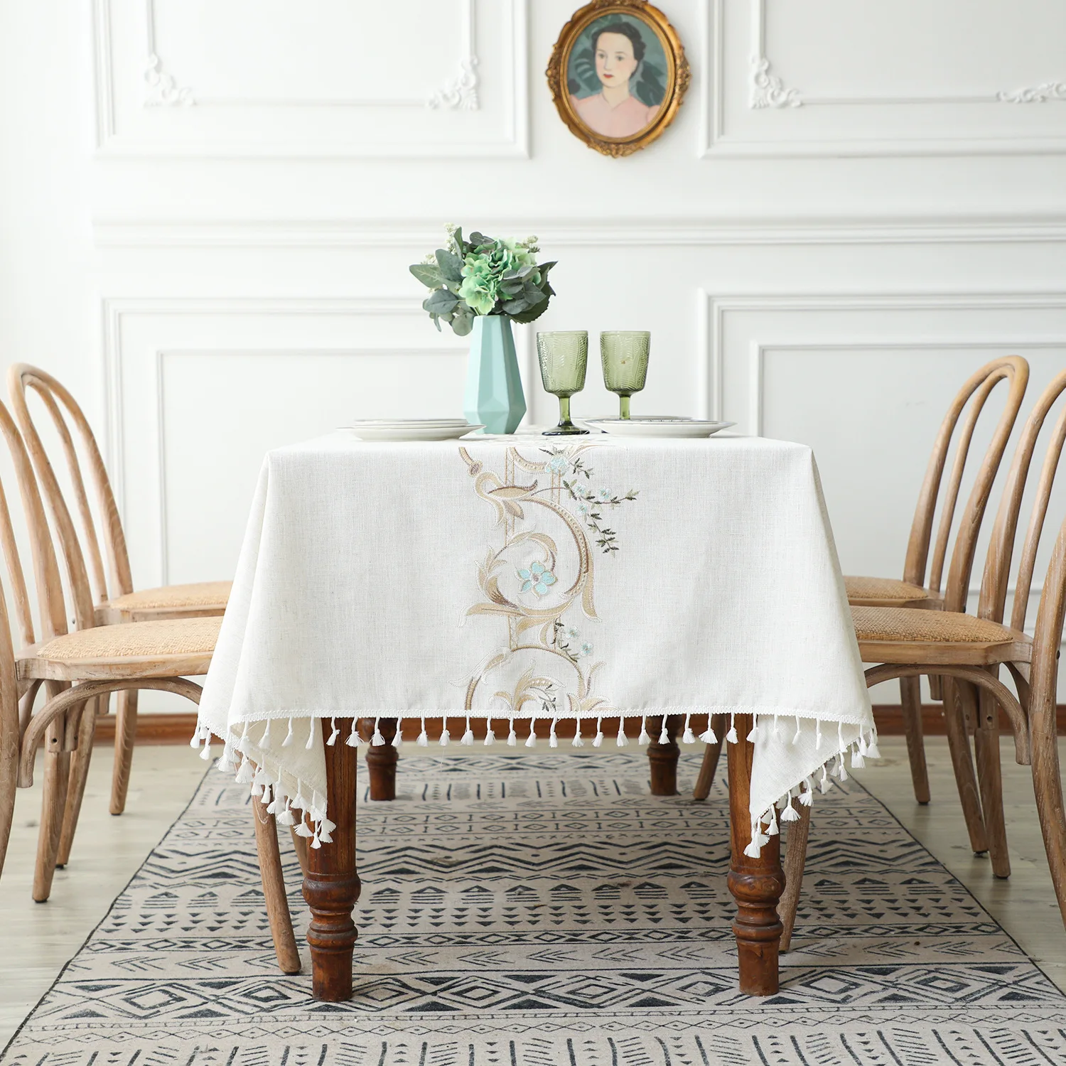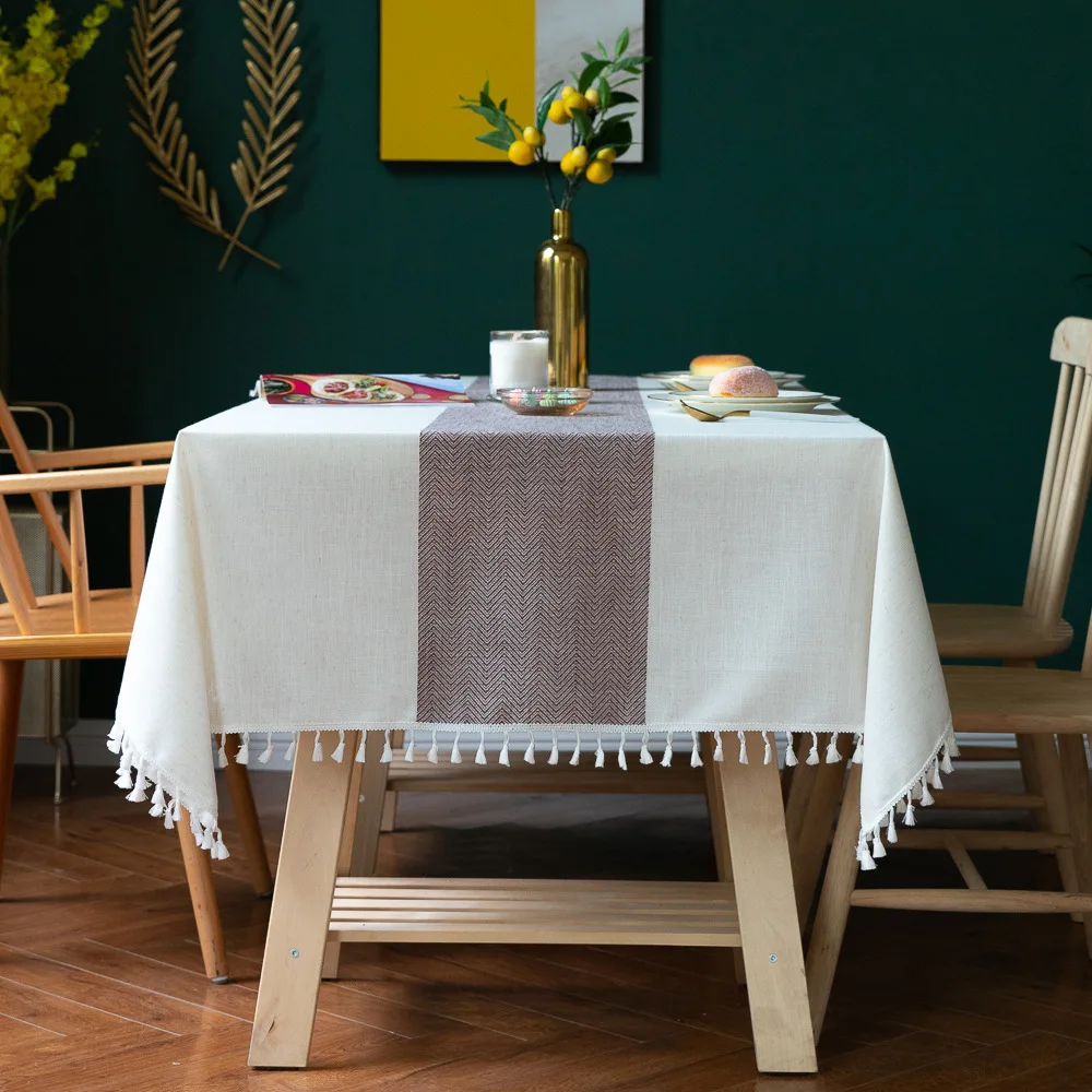 Скатерть нордическая для стола, пасторальная декоративная льняная прямоугольная скатерть с кисточкой, свадебная скатерть для обеденного стола, чайная скатерть