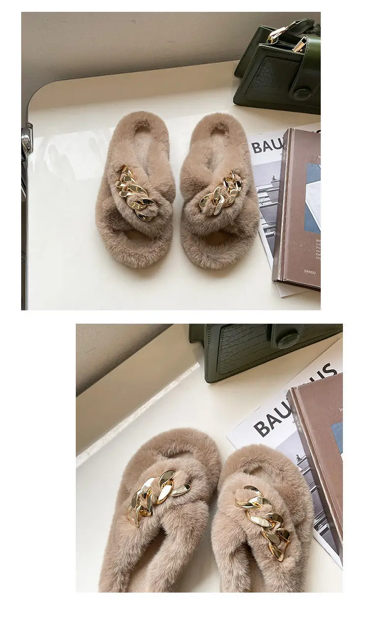 2021 пушистые зимние тапочки, чистый симпатичный цвет, металлически...