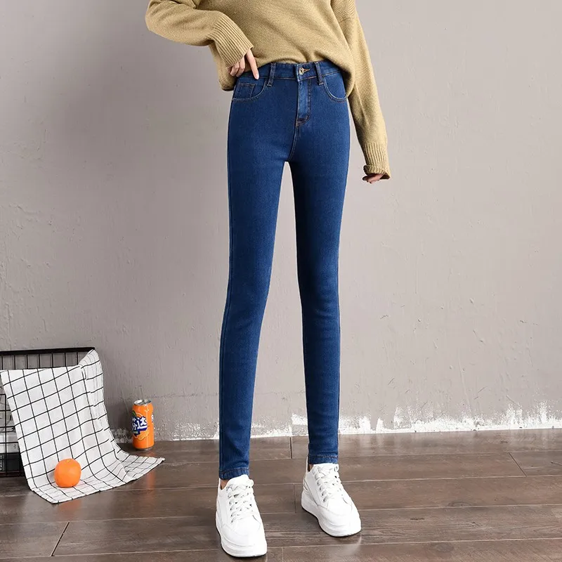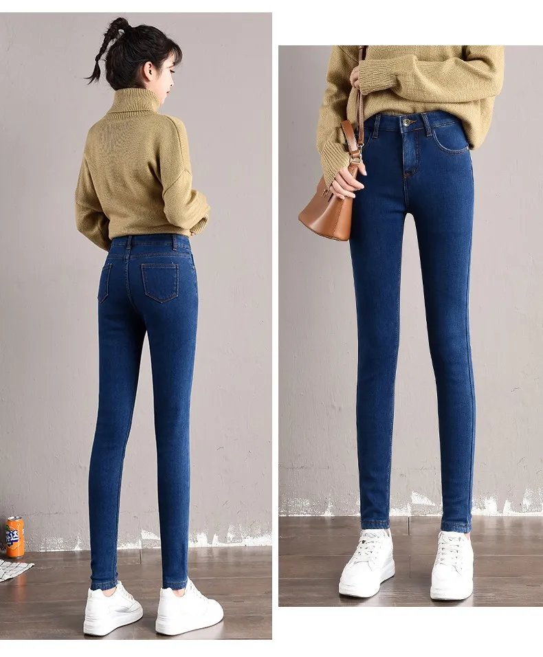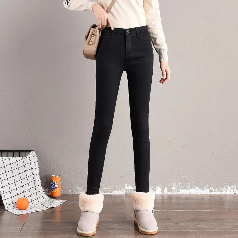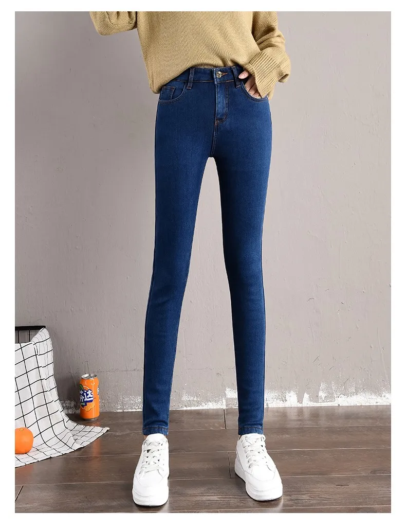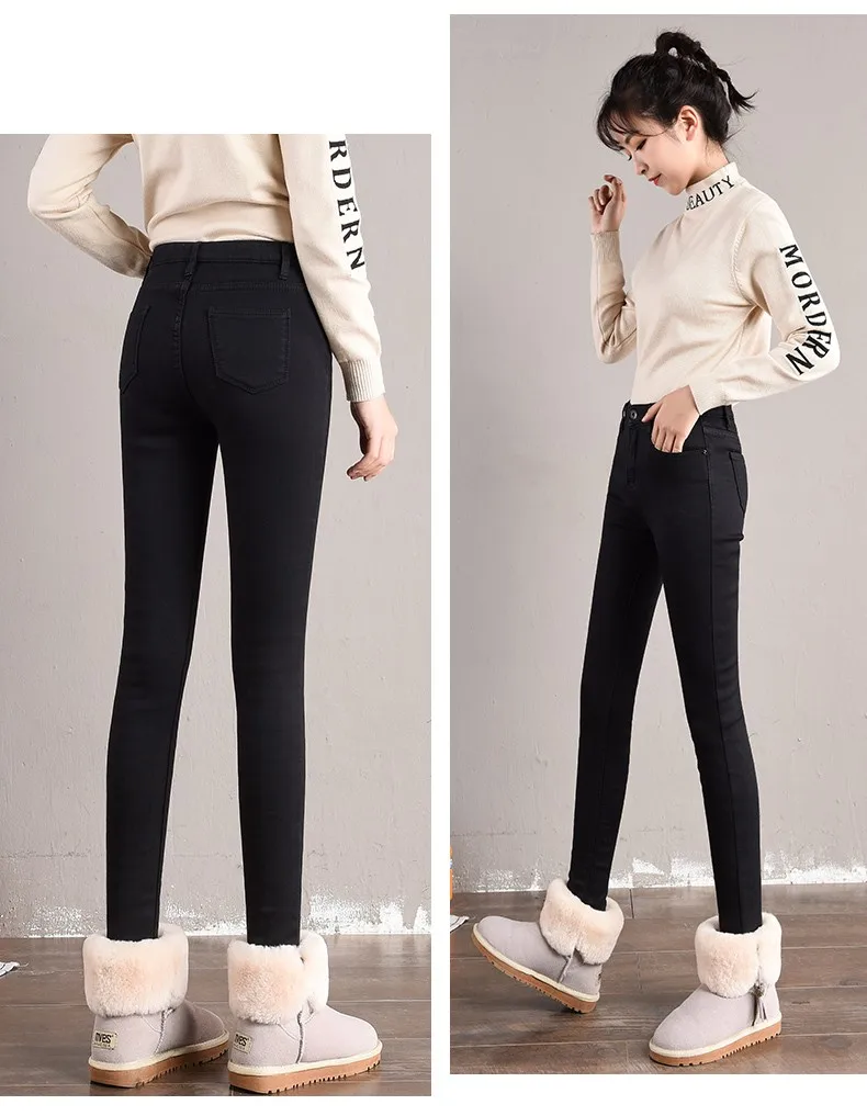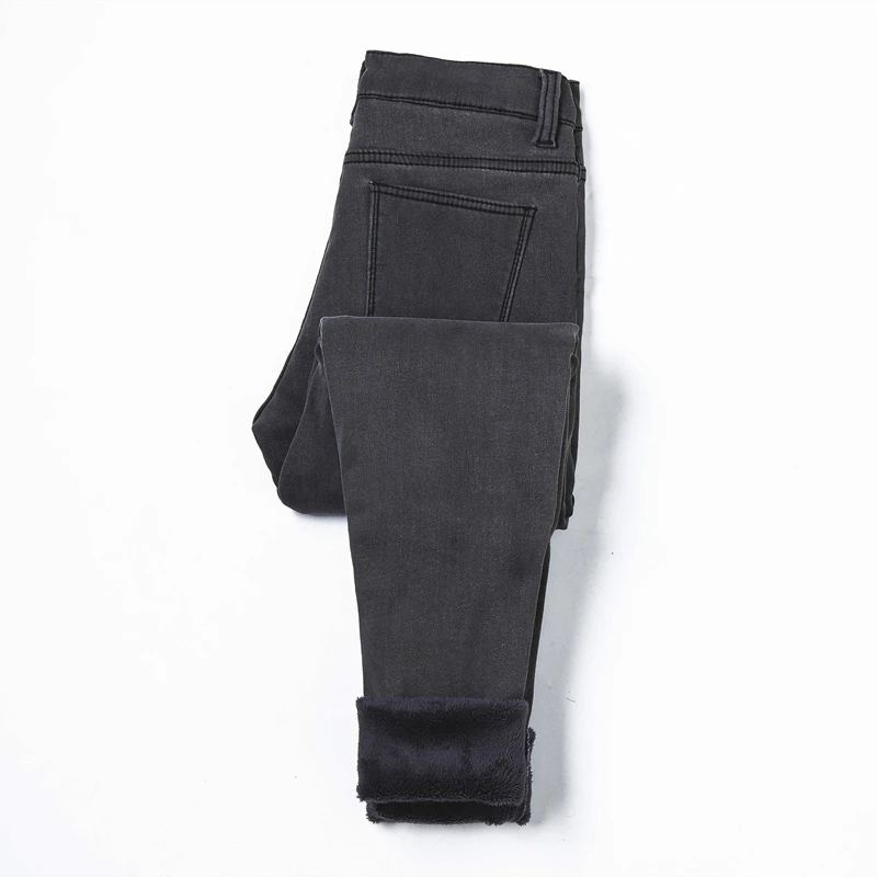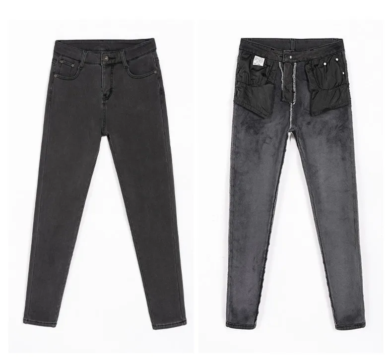 Зимние женские джинсы, бархатные утепленные эластичные длинные женские узкие джинсовые брюки-карандаш с завышенной талией и молнией, черные, синие, серые