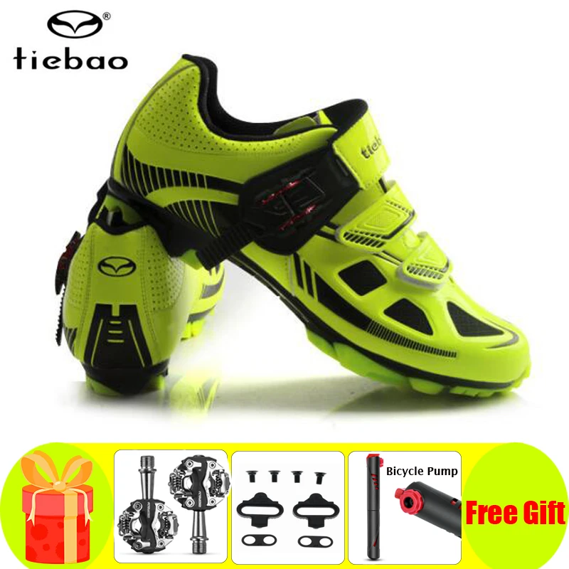 Велосипедные туфли Tiebao, педаль, SPD, набор, спортивная обувь для горных велосипедов, дышащая самозакрывающаяся, для мужчин и женщин