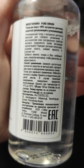 Тонер для лица PURE ORIGIN с 100% экстрактом центеллы азиатской (увлажняющий и успокаивающий) 150 мл