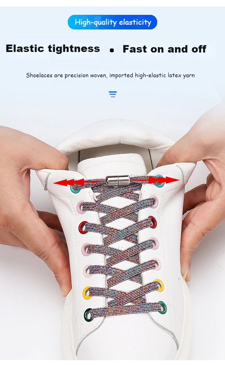 Экономия времени/простота использования: без галстука, никогда не беспокойтесь о том, чтобы завязывать обувь снова во время любой деятельности. Прост в использовании. Надевать обувь будет непросто. Эти эластичные шнурки для обуви легко и быстро снимаются.