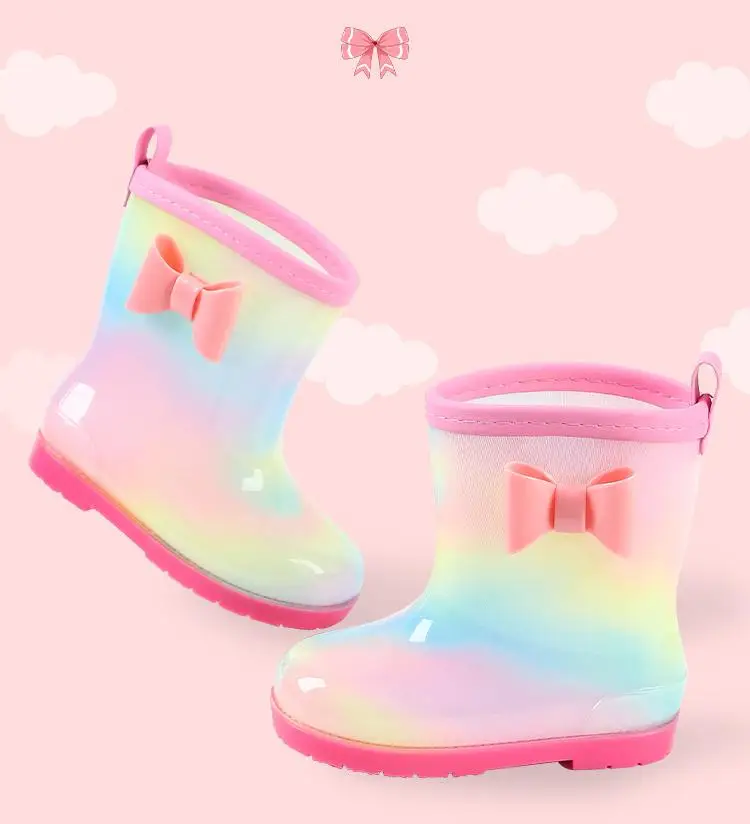 Детские резиновые ботинки из ПВХ, с рисунком радуги