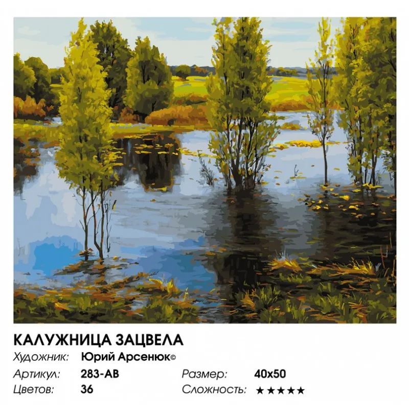 "Калужница зацвела" Живопись по номерам 40 * 50 на холсте. Белоснежка. 283-AB