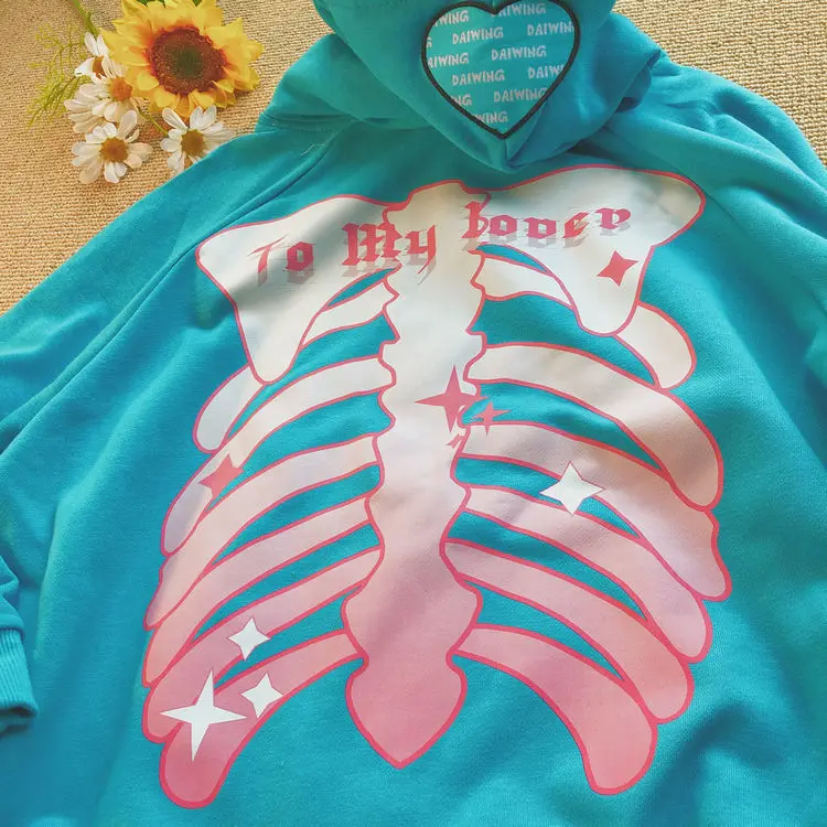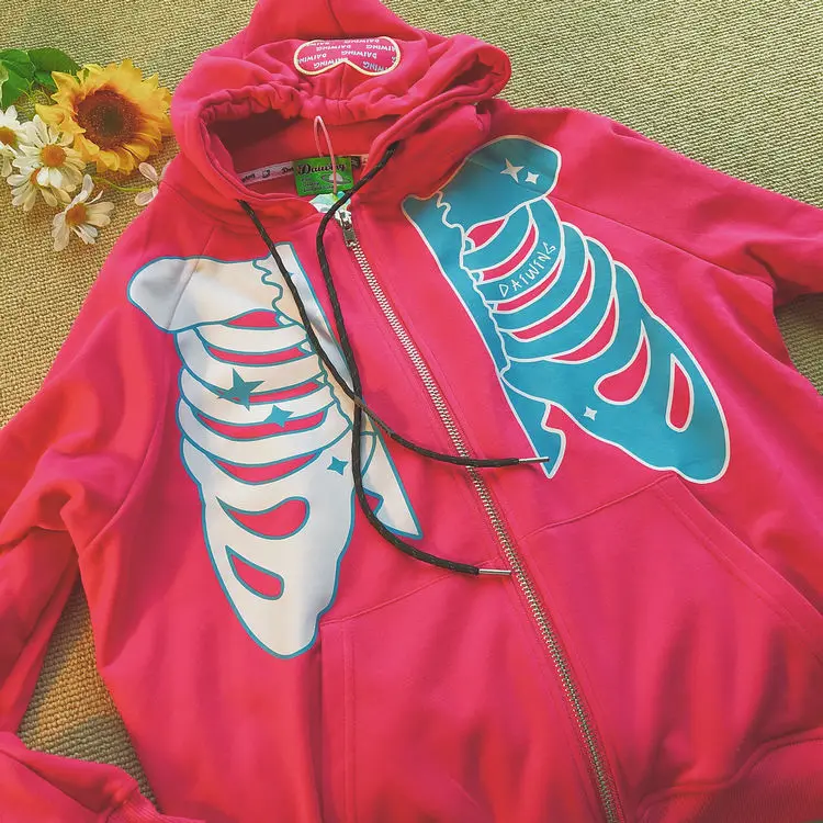 Свитер Y2K с капюшоном и принтом черепа для мужчин и женщин, весенн...