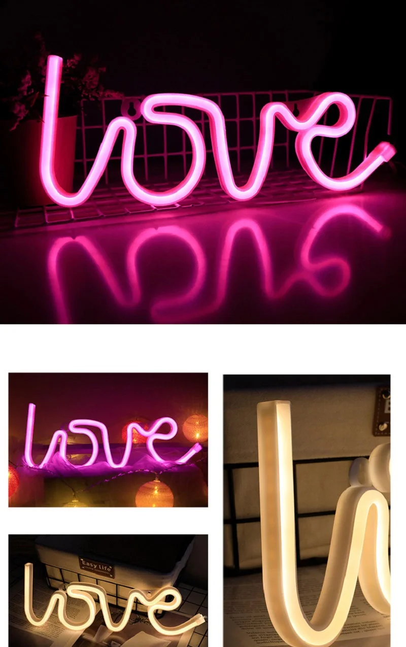 Светодиодный неоновый светильник в форме сердца, ночник с питанием от батареи и USB, ночной светсветильник льник с двойным питанием для помещений, Рождества, свадьбы, дня рождения