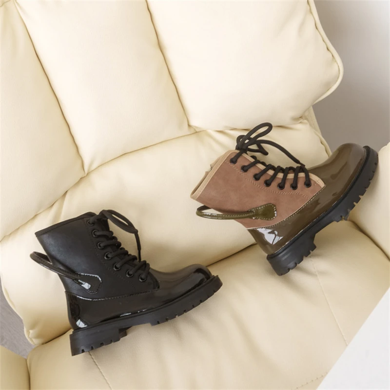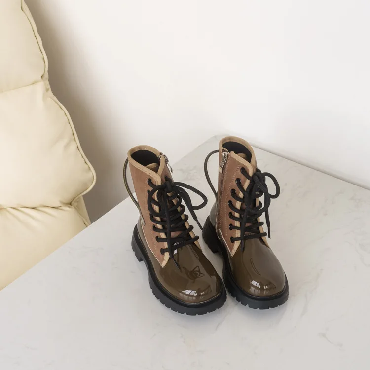 Ботинки детские осенние из лакированной кожи, до щиколотки, 03A