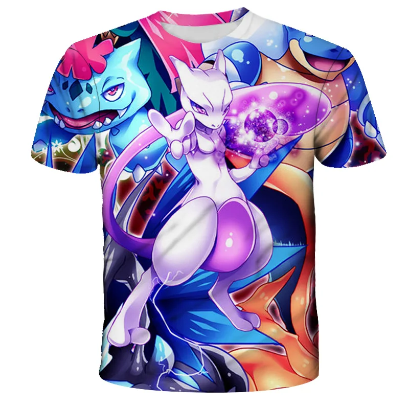 Летняя крутая и удобная универсальная футболка с 3D-принтом покемон...