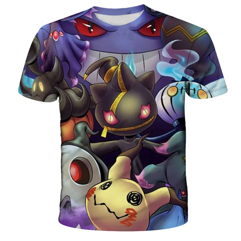 Футболка из серии Покемон с 3D принтом, одежда для мальчиков и девочек, Повседневная летняя футболка с изображением дикого лица с коротким рукавом для косплея, милая детская футболка с покемоном