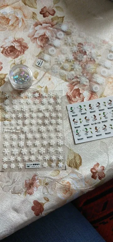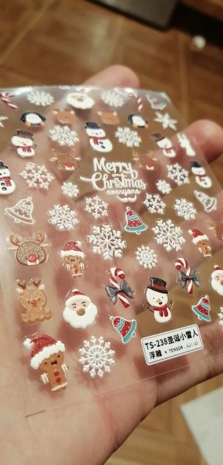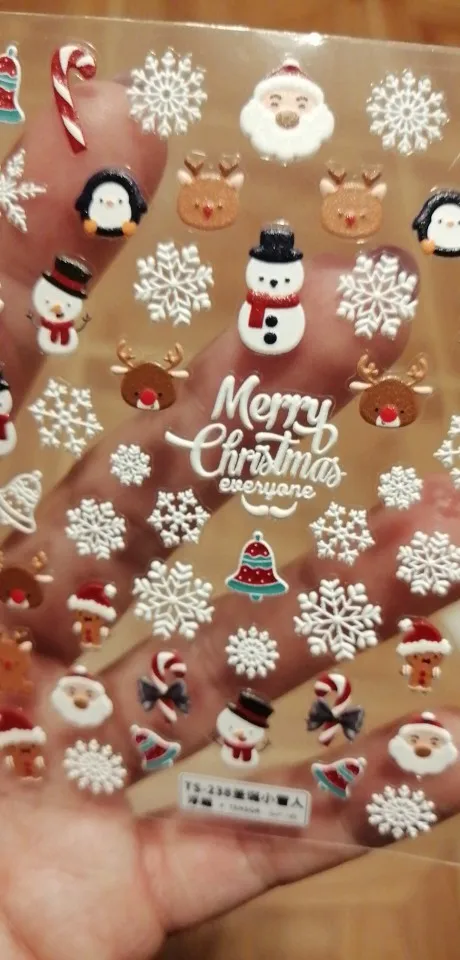 Красивые 3D рождественские наклейки для ногтей, мне нравятся эти наклейки, они хорошо прилипают, я использую резиновое верхнее пальто, чтобы держать их долговечными, спасибо за то, что продаете Бесплатные наклейки со снежинками, заказ отправлен и получил быстро, хорошо упакованы, продавец рекомендует, спасибо