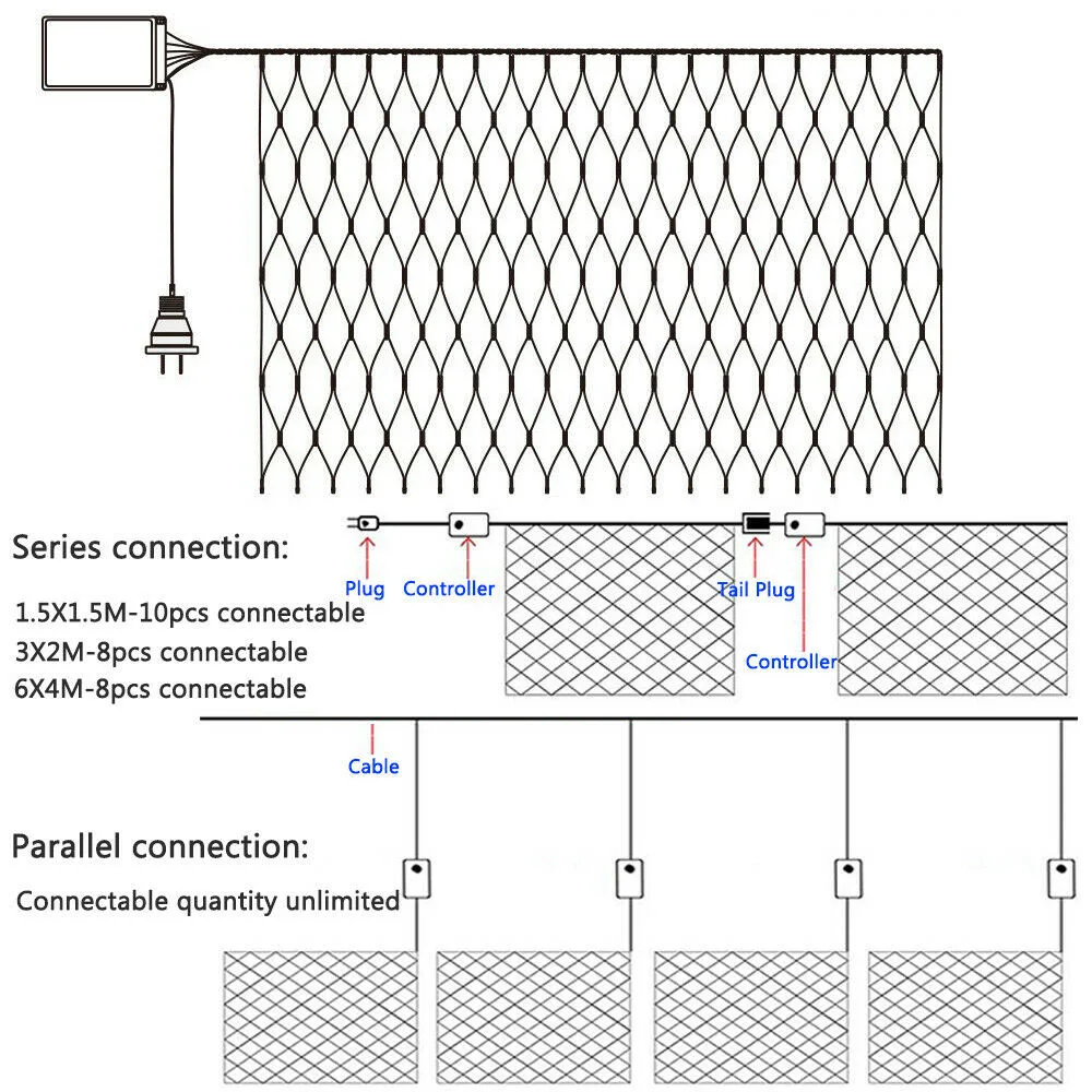 Гирлянда-занавес, светодиодная, 8 режимов, рыболовная сетка легкая