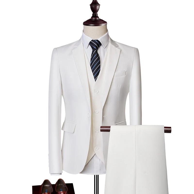 (Пиджак + жилет + брюки) официальный мужской костюм-тройка Новый однотонный эксклюзивный деловой модный мужской костюм