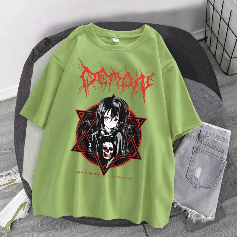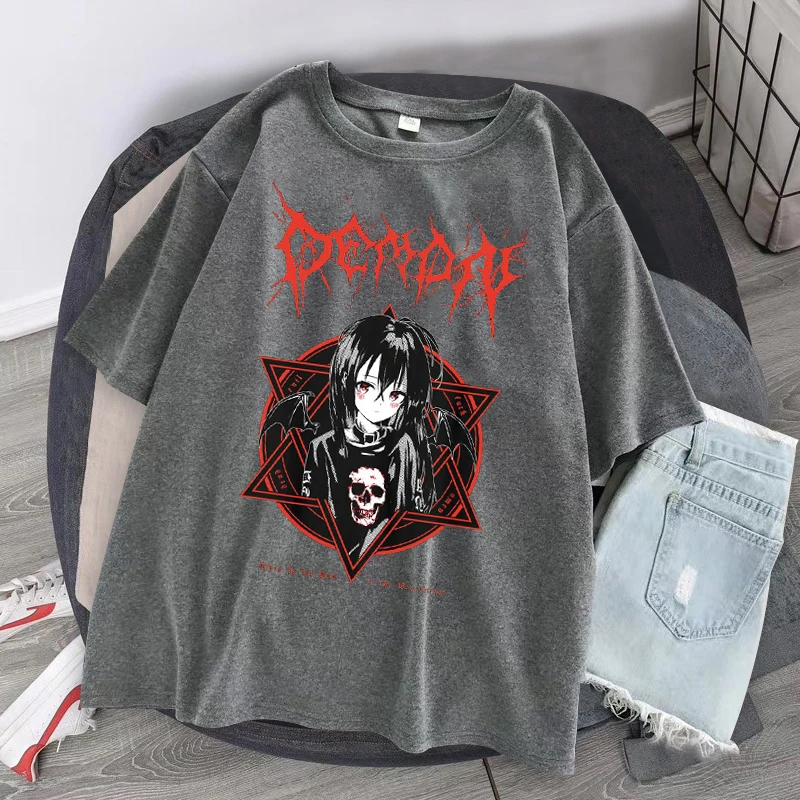Футболка в стиле Харадзюку, рубашка с коротким рукавом и круглым вырезом в готическом стиле, топ в стиле панк, летняя свободная уличная одежда оверсайз, Прямая поставка