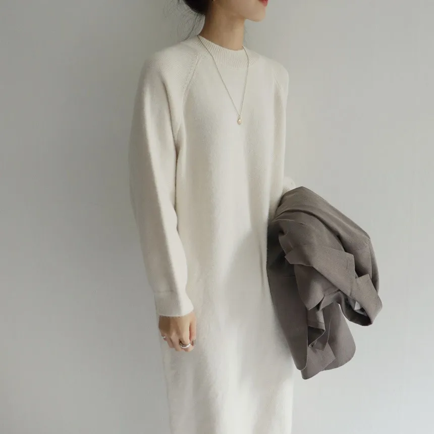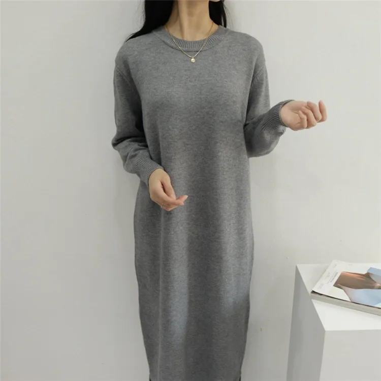Женское трикотажное платье-свитер, однотонное, красное, белое, черное, вязаное, Повседневный, корейский стиль, 2021