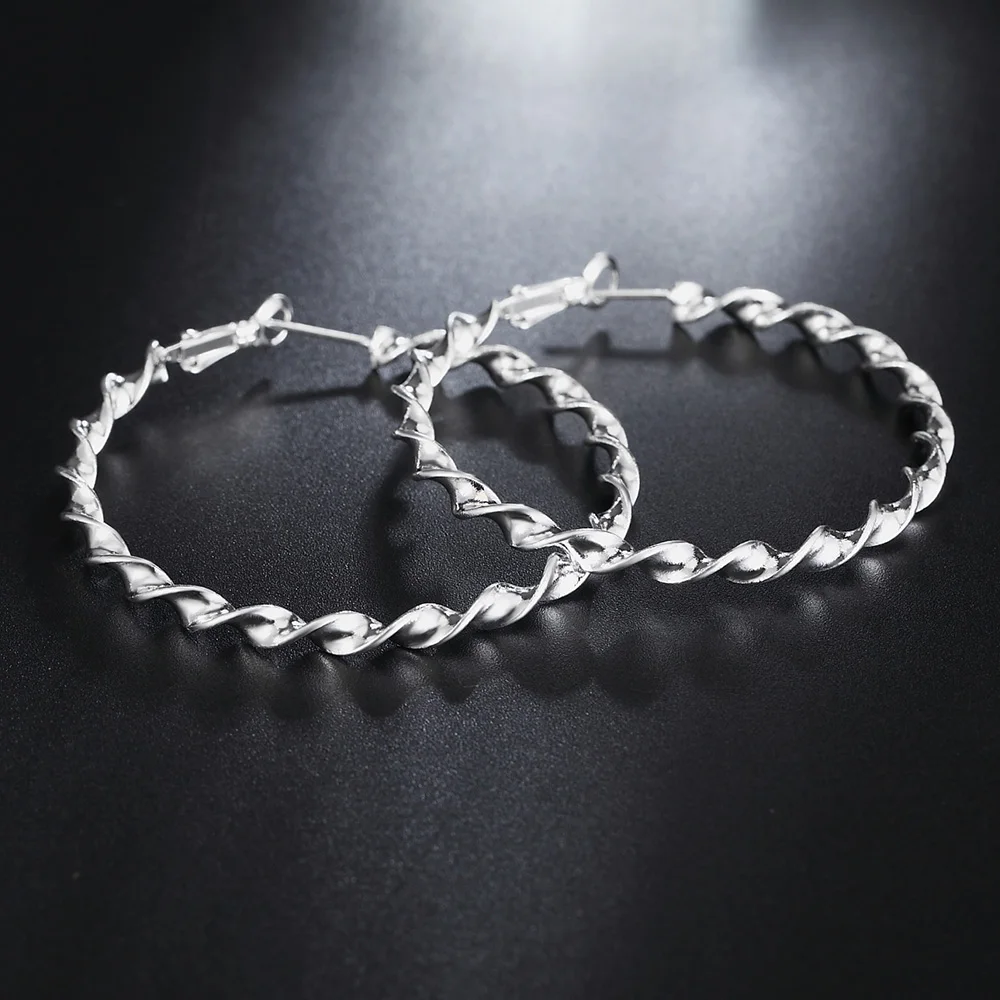 925 серебряные большие витые серьги-кольца для женщин, модные сваде...