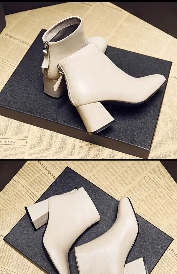 Женские короткие ботинки на высоком каблуке, мягкие кожаные ботинки на толстом каблуке, сезон Chunqiu, британские БОТИНКИ-мартинсы, белые ботинки с квадратным носком