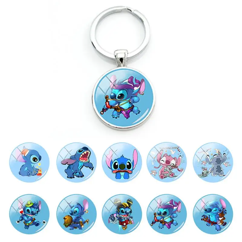 Disney Lilo & Stitch, милые стежки для ключей, подарки для детей, сумка для мальчиков и девочек, автомобильный брелок, стеклянный купол, Подвесные брелки из кабошона DSN313