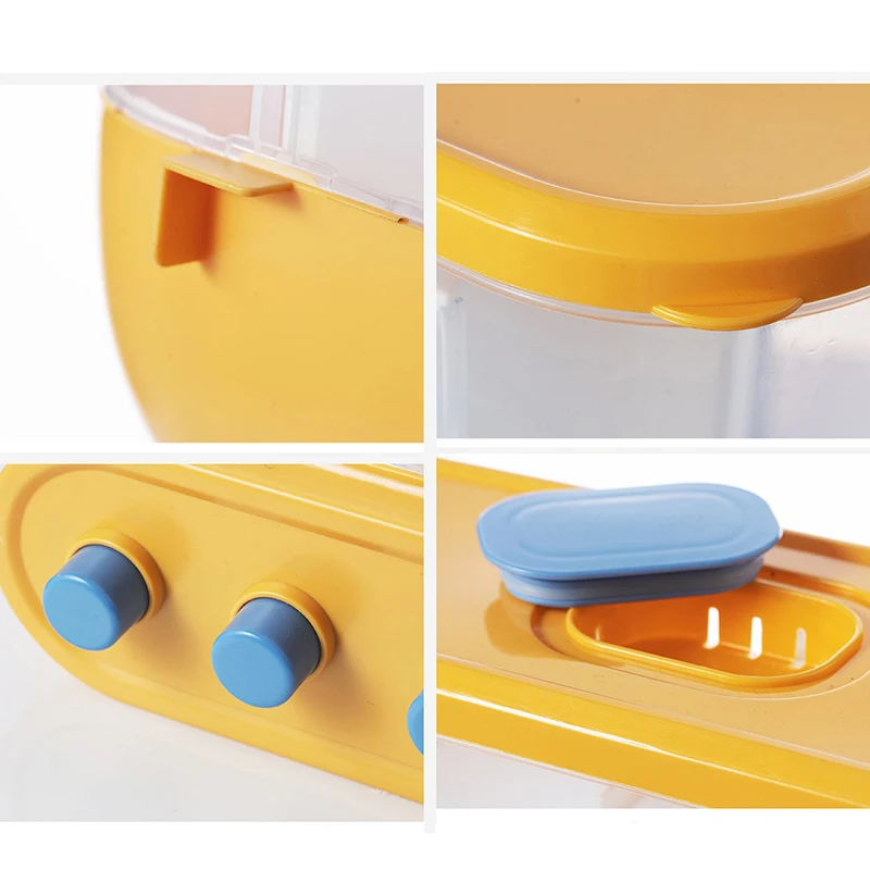 Прозрачный корпус, мы можем увидеть еду в коробке и большой емкости