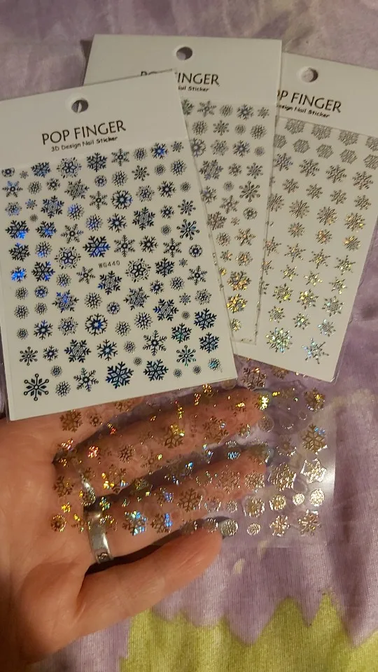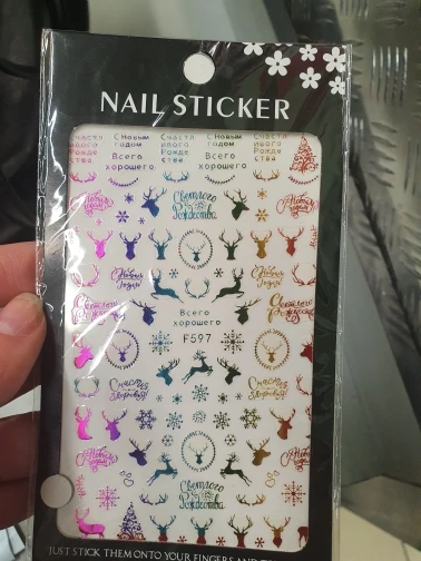 Наклейки нереально красивые!!! Как на картинке, переливаются потрясающе, даже на небольшой ноготок вместятся. Пришли достаточно быстро, в пакете с пупыркой и каждый в индивидуальном пакетике. Ничего не помялось. Покупкой довольна на всё 100%!!!