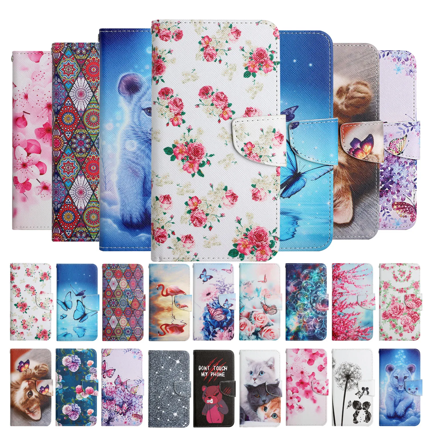 Кожаные чехлы-книжки с рисунком для телефона Galaxy A03S A22 A72 A5...