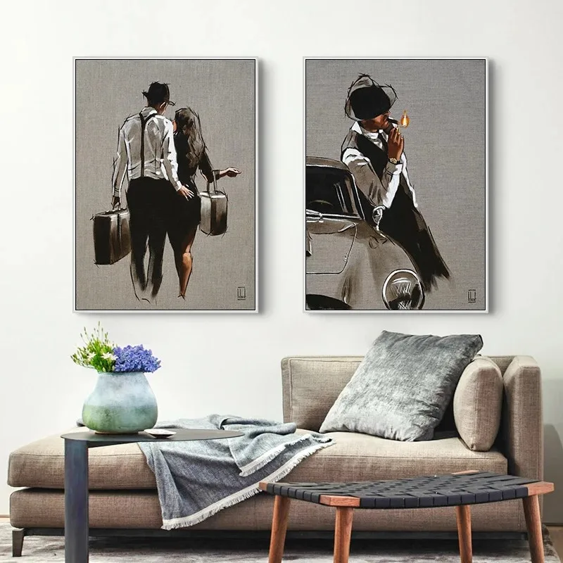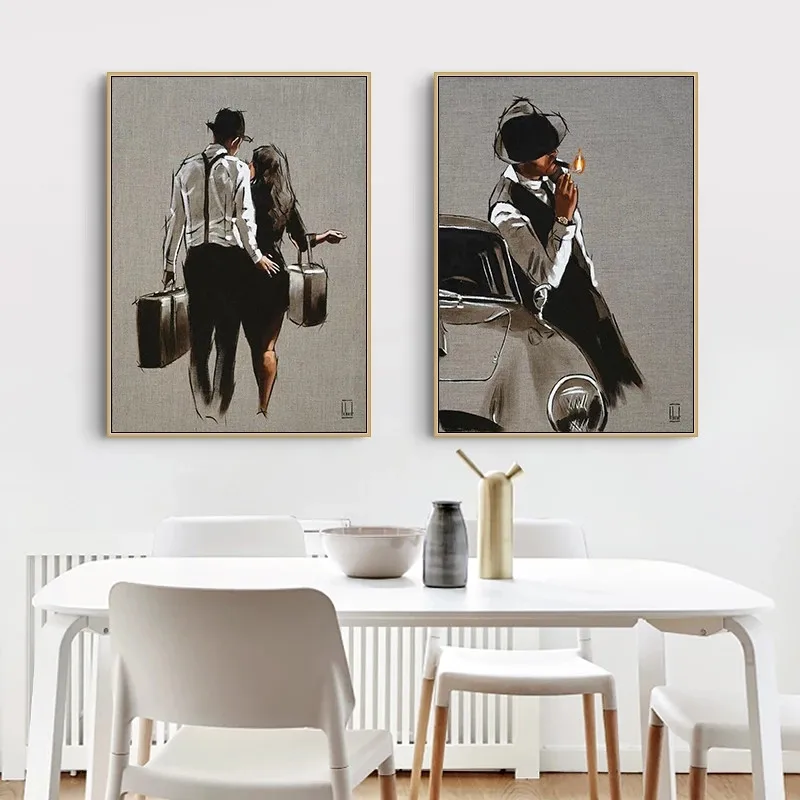 Современная живопись искусство Ретро стиль цветные фигурки обнимающие пары холст живопись внутреннее украшение живопись (без рамки)