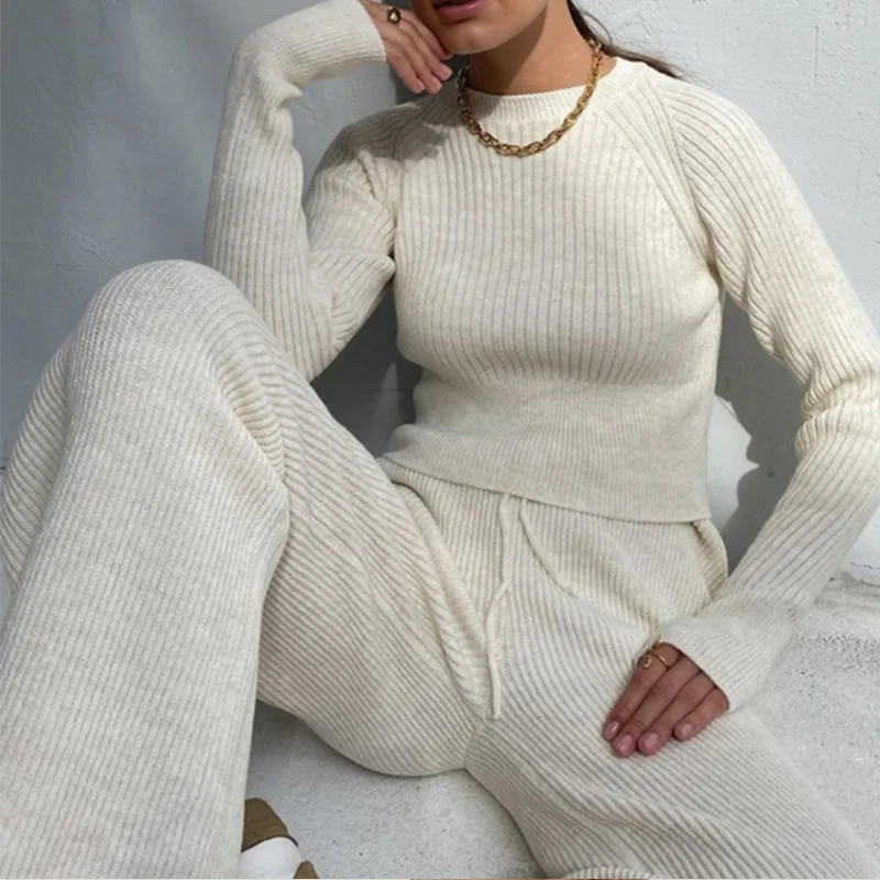 Женский осенне-зимний Повседневный пуловер с круглым вырезом и брюки на шнуровке
