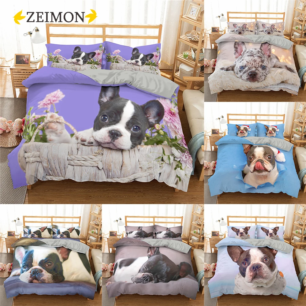 Комплект постельного белья ZEIMON в виде бульдога, животных, щенков, пододеяльник, мультяшное постельное белье, домашний текстиль с принтом животных для девочек, милый
