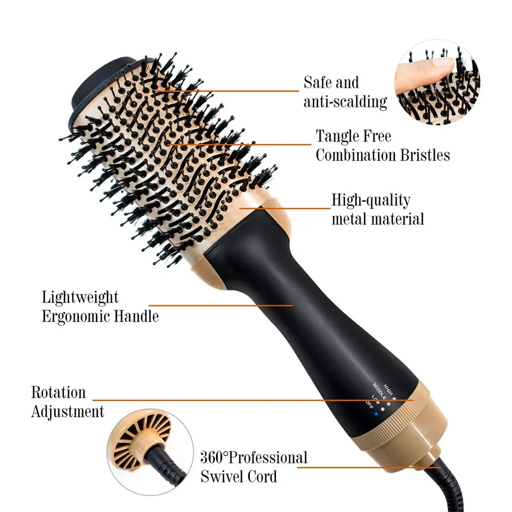 1. Многофункциональная щетка для горячего воздуха: идеально сочетающая сушилка, щетку, выпрямитель и бигуди. Фен-щетка для волос обеспечивает выдувание сухих волос, а тем временем делает ваши бигуди для волос гладкими.