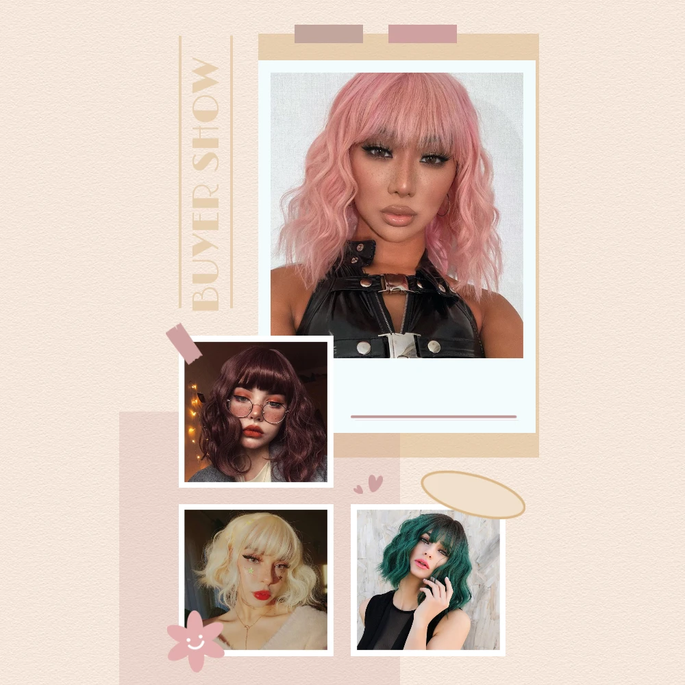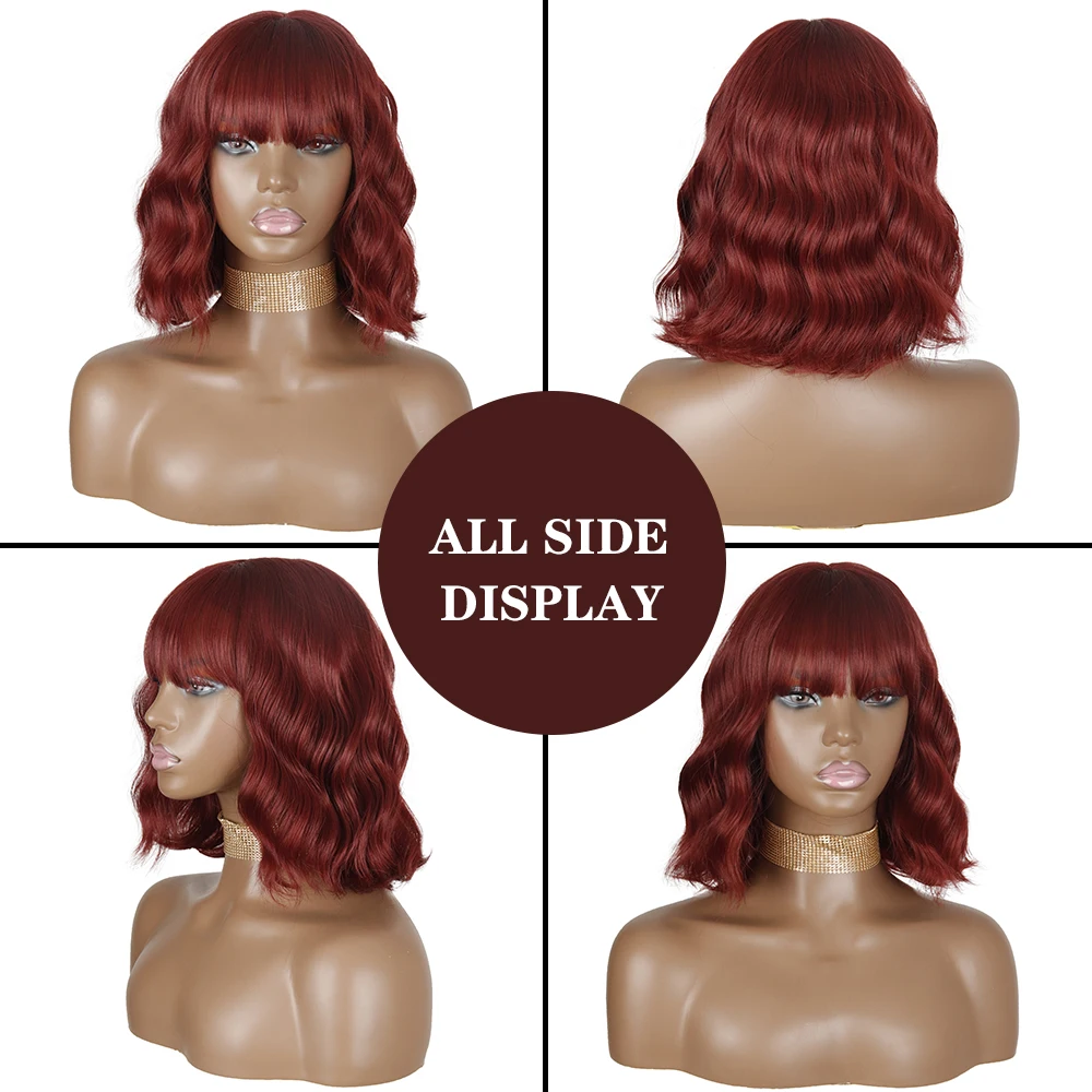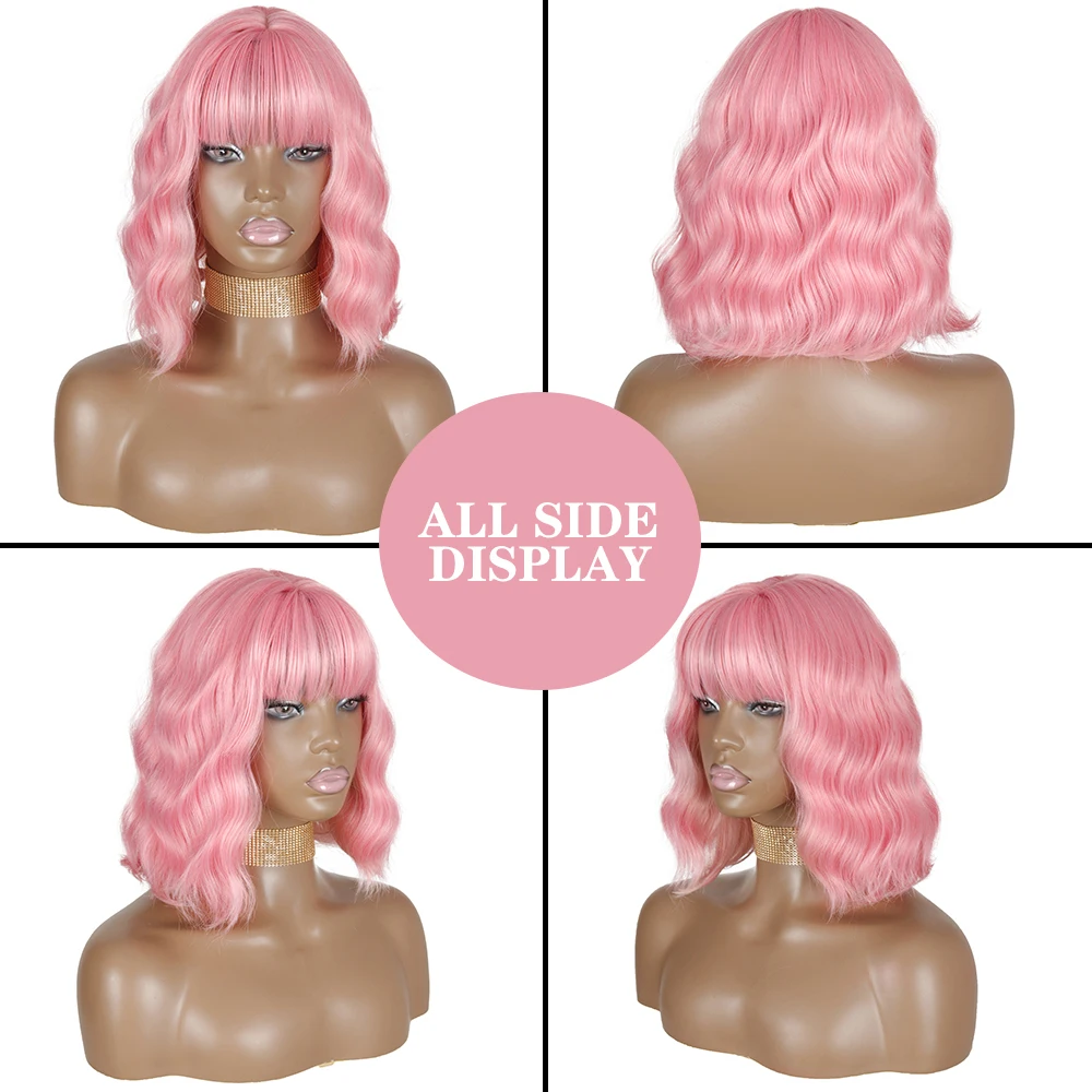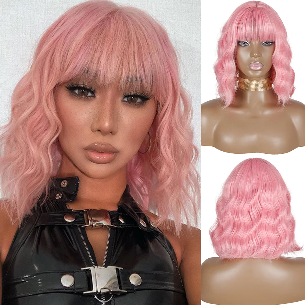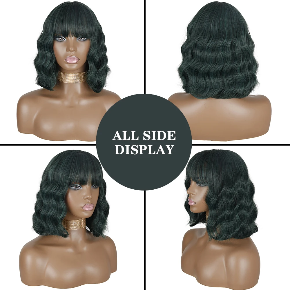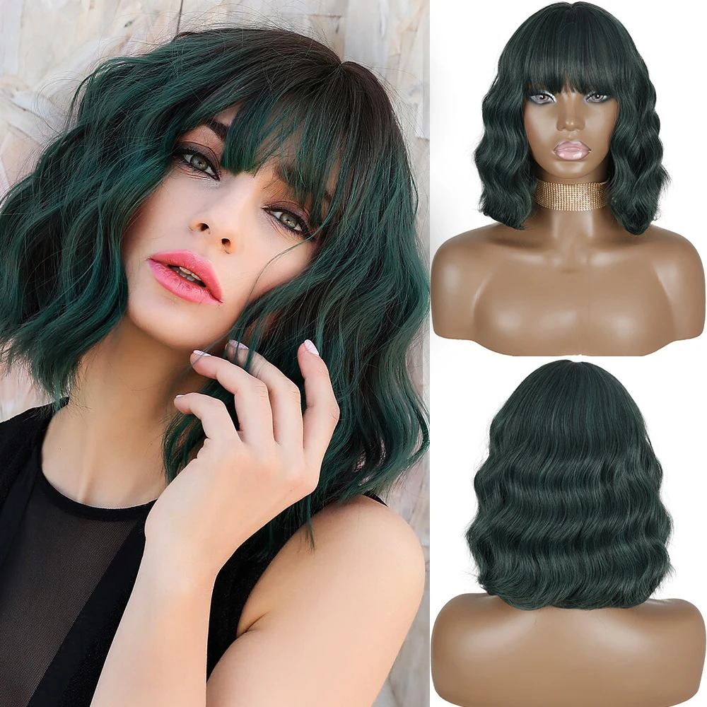 Синтетические парики для женщин, короткие волнистые парики с челкой...