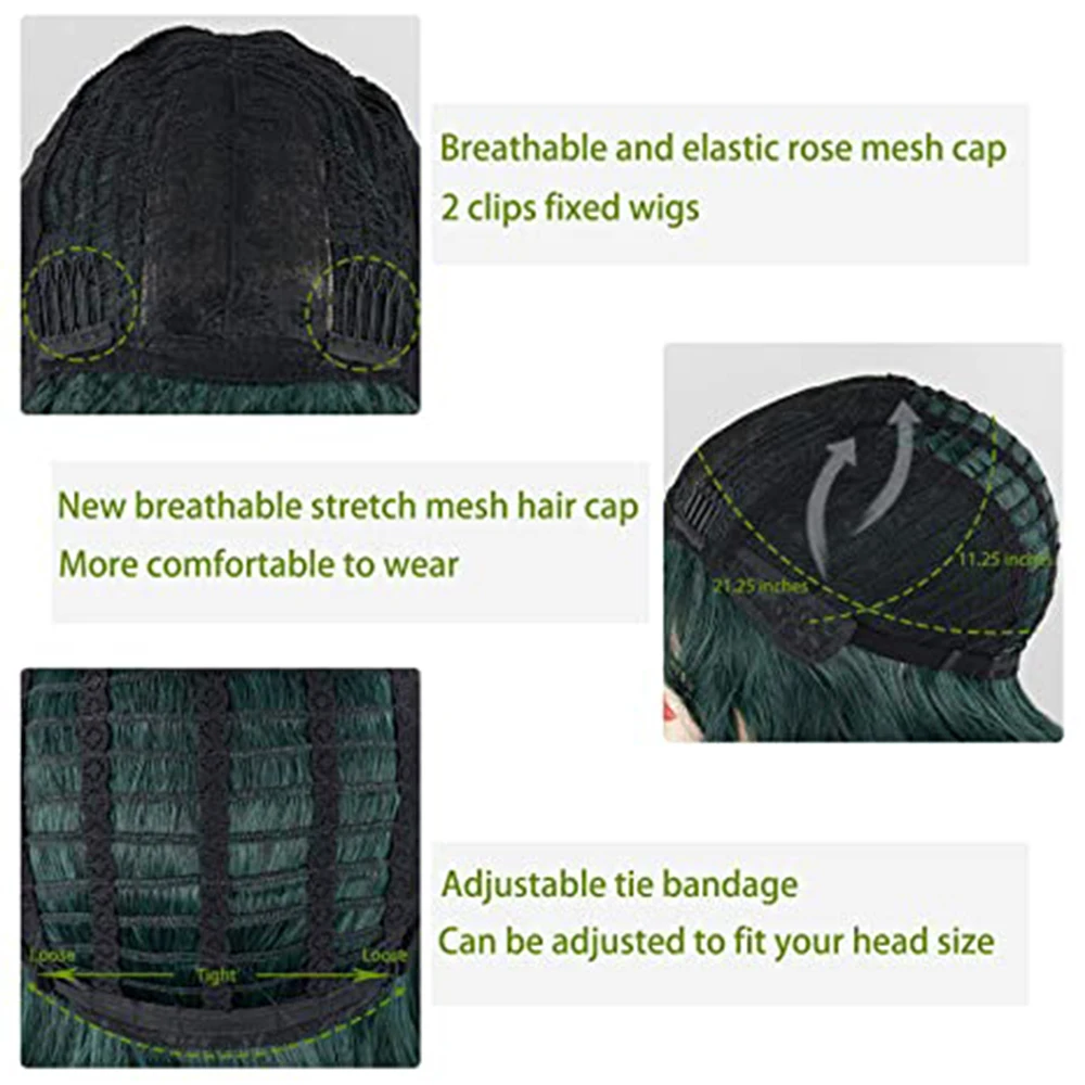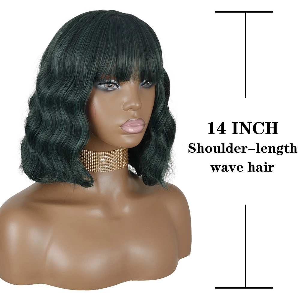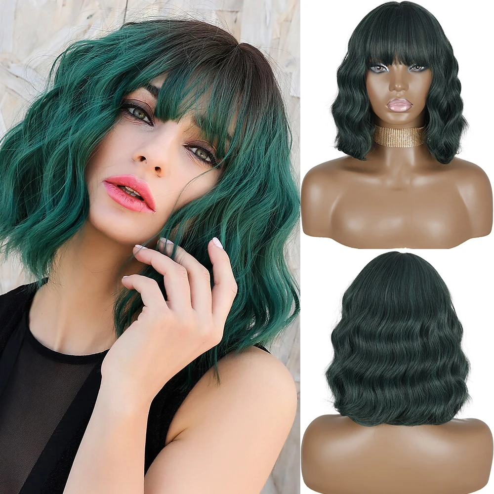 Синтетический короткий прямой парик Боб с челкой для женщин, зелены...