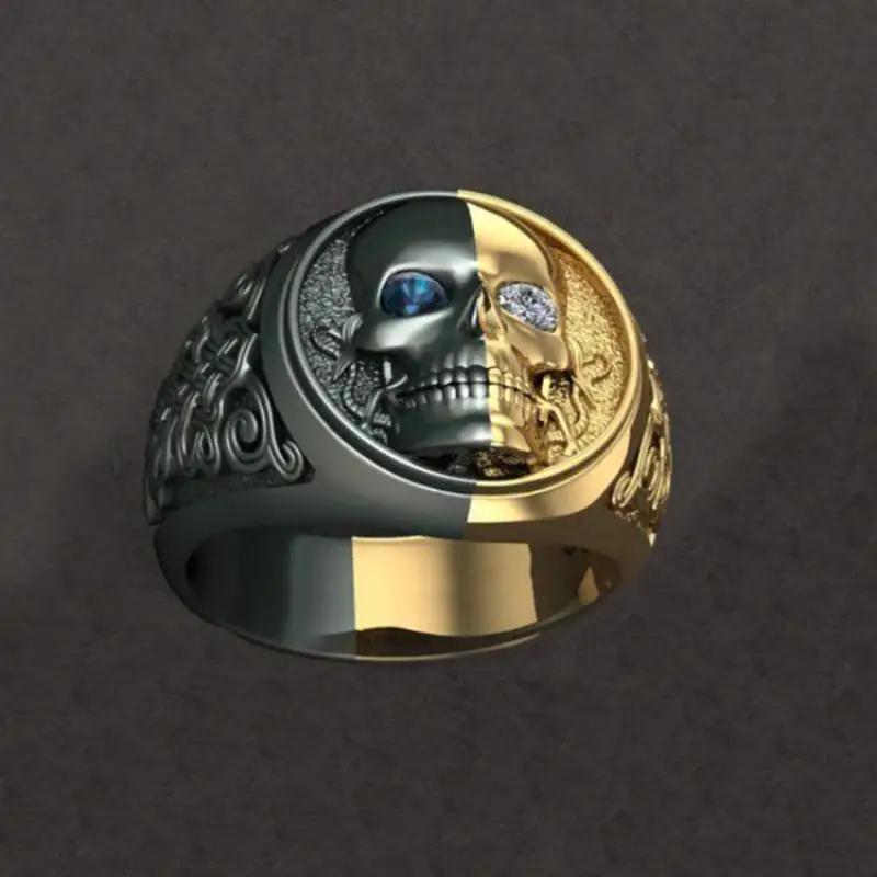 Кольца в стиле хип-хоп для мужчин, оригинальные двухцветные кольца в виде черепа, для рок-вечерние